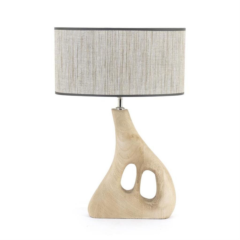 Elegant bordslampa i naturfärg med unik träbas och stilren lampskärm. Perfekt för modern inredning.