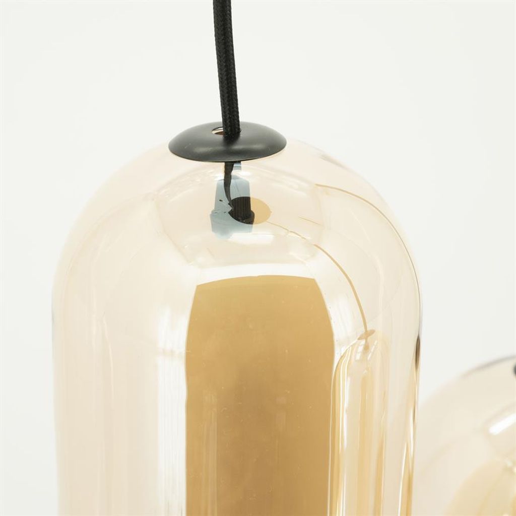 Elegant klusterlampa i amber glas och järn, perfekt för att skapa en varm atmosfär i ditt hem.