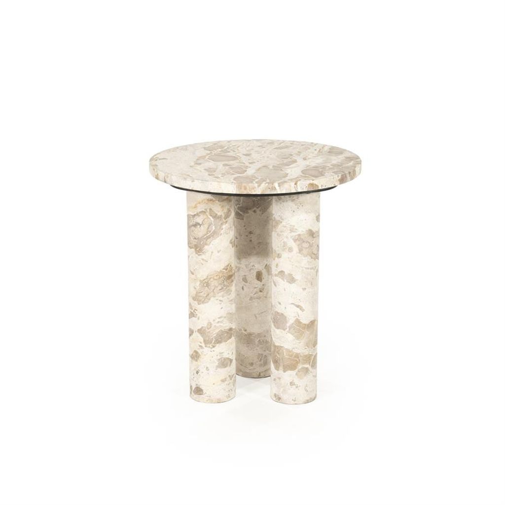 Exklusivt sidobord i beige marmor med unik ådring. Perfekt som elegant inredningsdetalj.