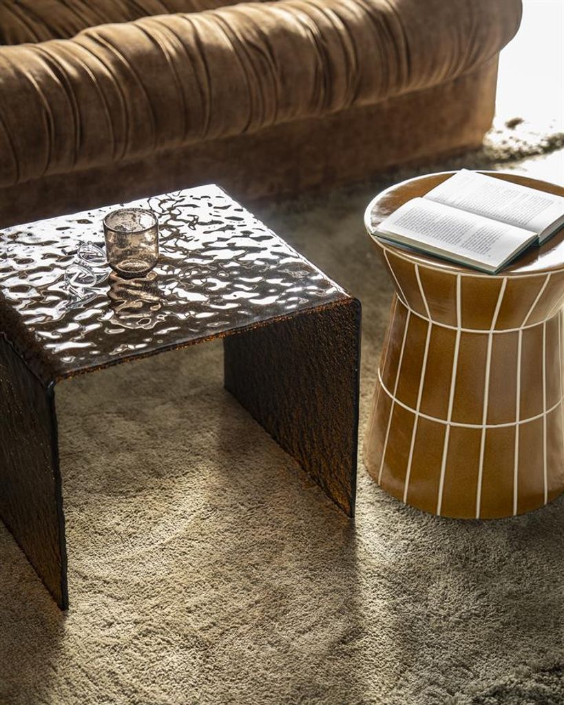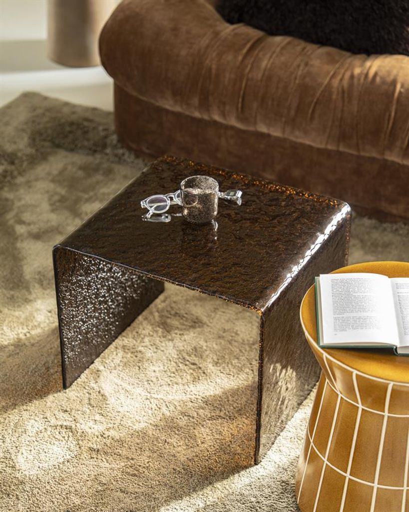 By Boo Sidobord Ripple i brun färg är en perfekt kombination av modern design och funktionalitet. Bordet är tillverkat av högkvalitativt glas och har en unik vågstruktur som fångar ljuset vackert och skapar en intressant visuell effekt. Med sina dimensioner på 50x45x42 cm passar det perfekt som ett accentbord i vardagsrummet eller bredvid soffan.