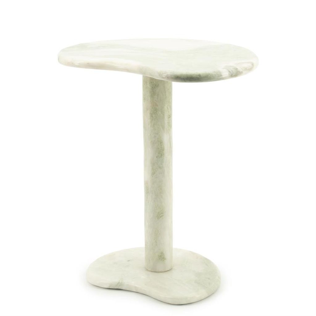 Med måtten 45,5x33x54 cm är detta bord perfekt för att komplettera både små och stora utrymmen. Det är utformat med en solid pelare som ger stabilitet och en unik form som drar ögat till sig. Marmorytan är både hållbar och lätt att rengöra, vilket gör det till ett praktiskt val för vardagsbruk.