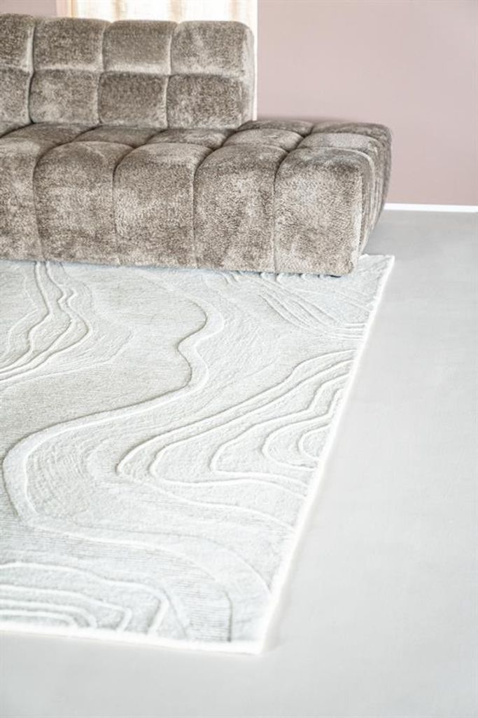 Mattan har en vacker, subtil textur med ett organiskt, vågigt mönster som tillför både djup och visuell intresse. Den off-white färgen ger en ljus och modern atmosfär och passar utmärkt med olika inredningsstilar, från minimalistisk till mer traditionell.