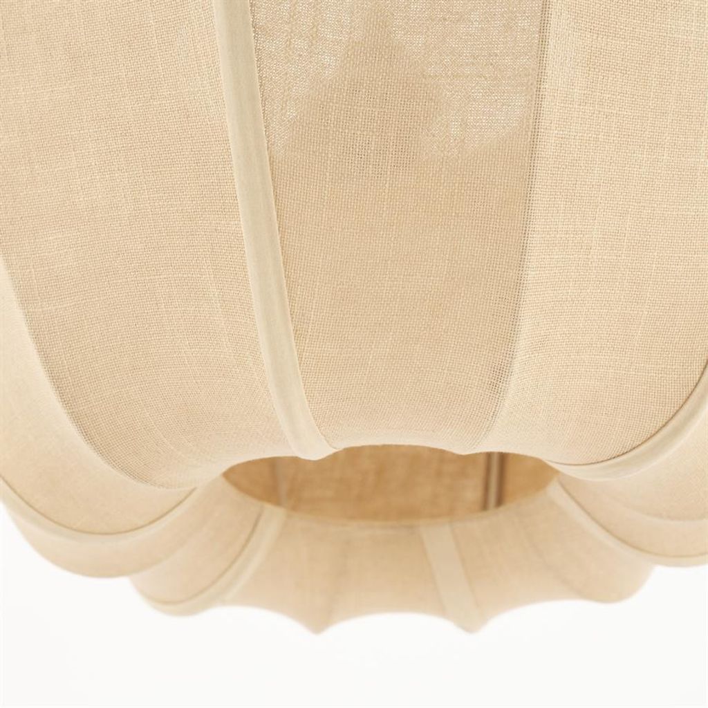 Elegant taklampa i naturell färg med mjuka former, tillverkad av järn och tyg. Perfekt för stilrena hem.