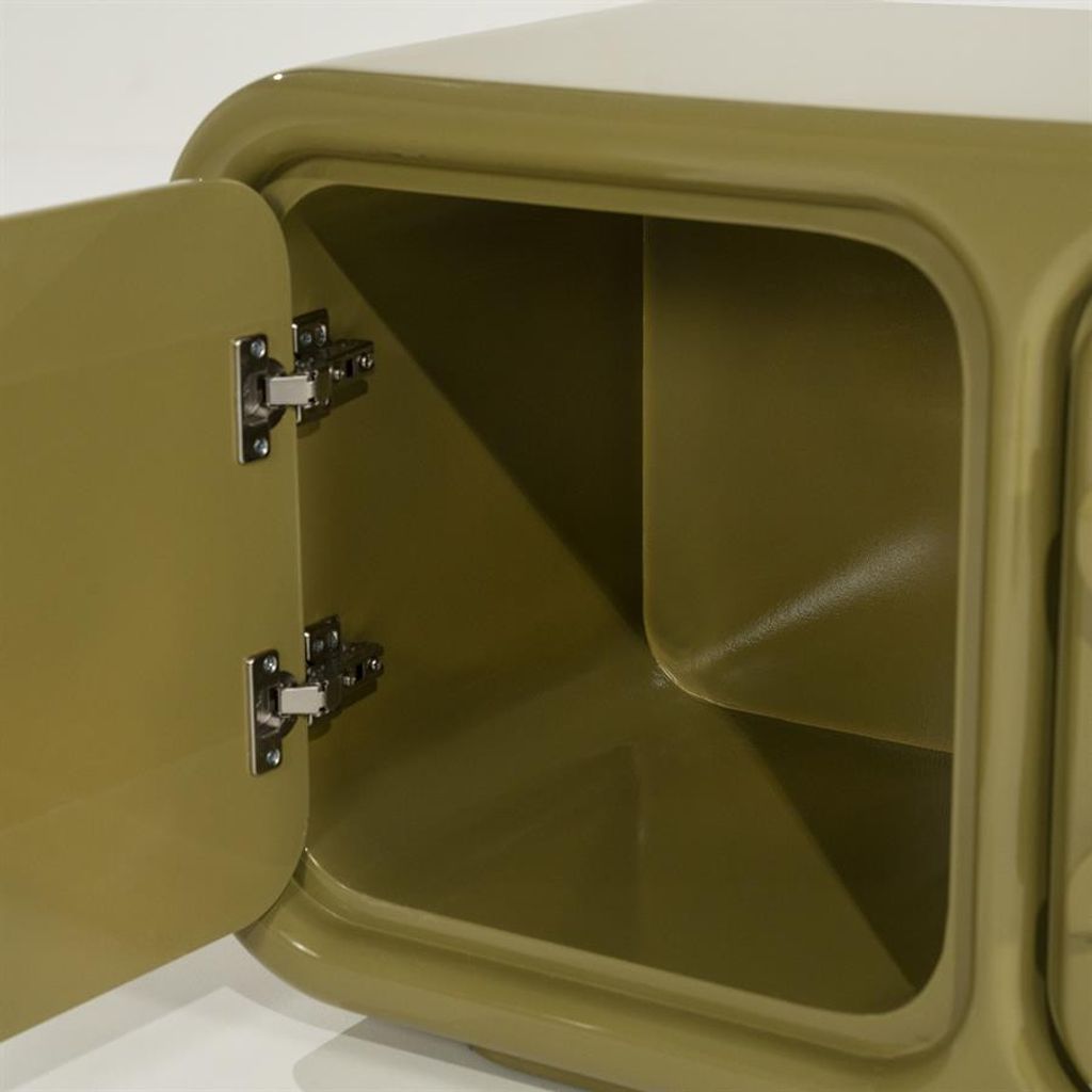 Stilren och praktisk TV-bänk från By Boo i grön MDF, med rundade kanter och rymliga skåp för optimal förvaring.