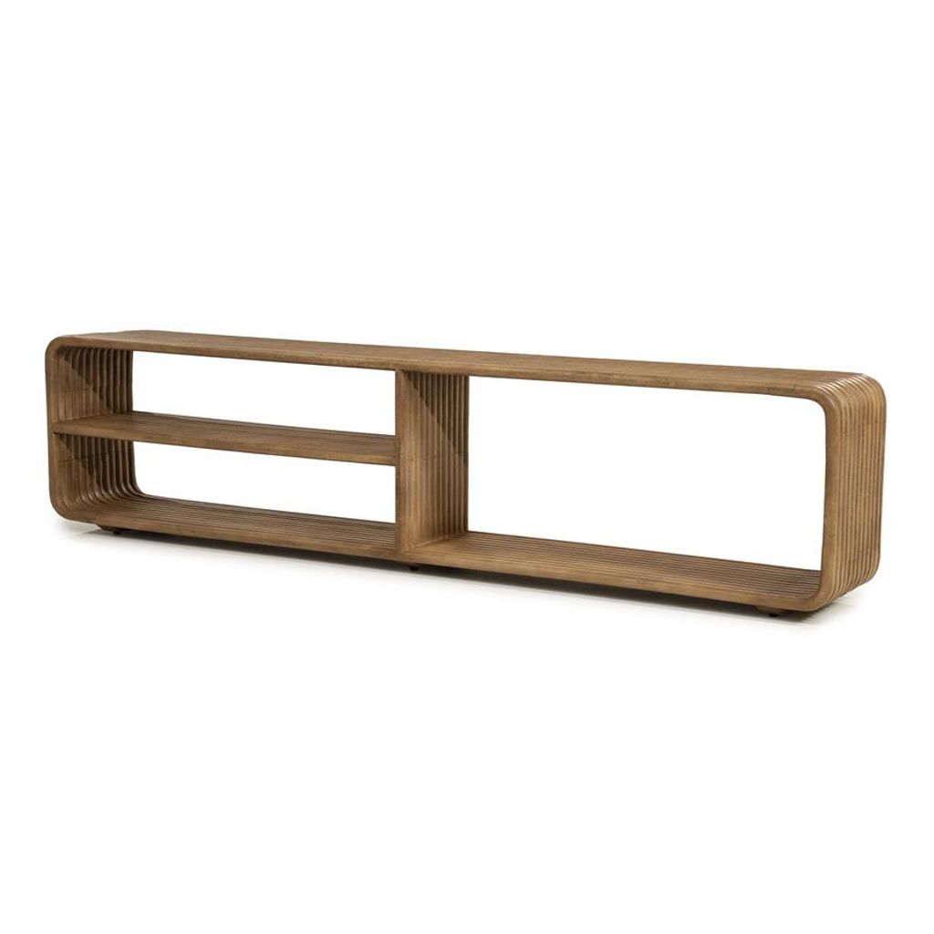 Elegant TV-bänk i mangoträ med ribbad design. Perfekt för stilfull förvaring och med måtten 200x30x45 cm.