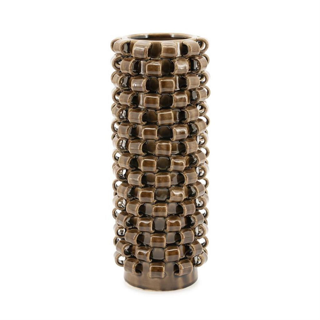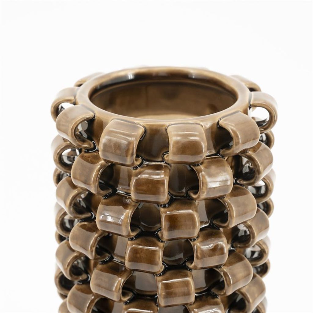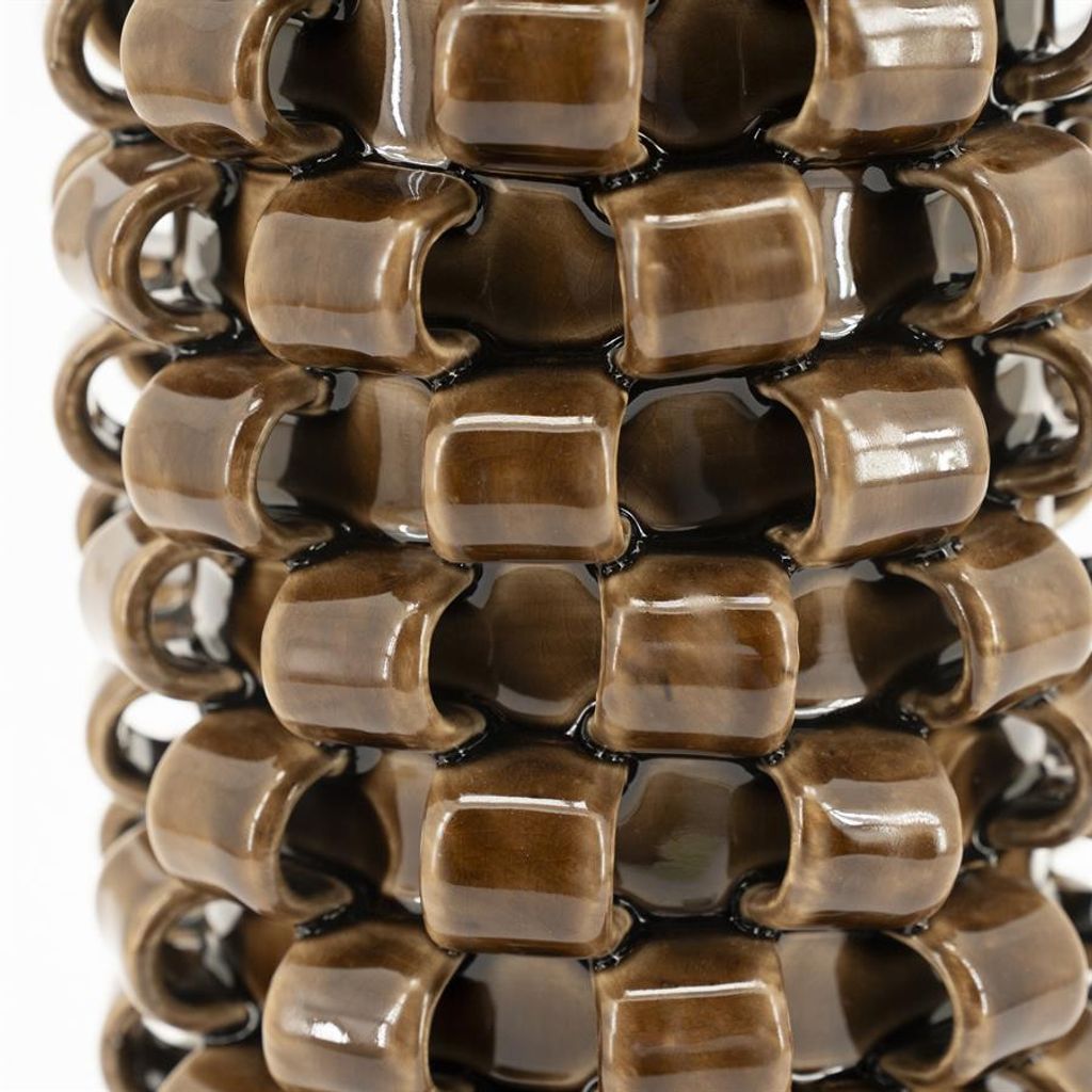 Den distinkta loopade designen skapar en iögonfallande textur som tillför djup och karaktär till din inredning. Den varma bruna färgen kompletterar både traditionella och moderna miljöer, vilket gör den idealisk för alla typer av rum. Perfekt för att framhäva dina favoritblommor eller som en stående konstinstallation. Varje detalj är noggrant utformad för att ge en sofistikerad touch till ditt hem.