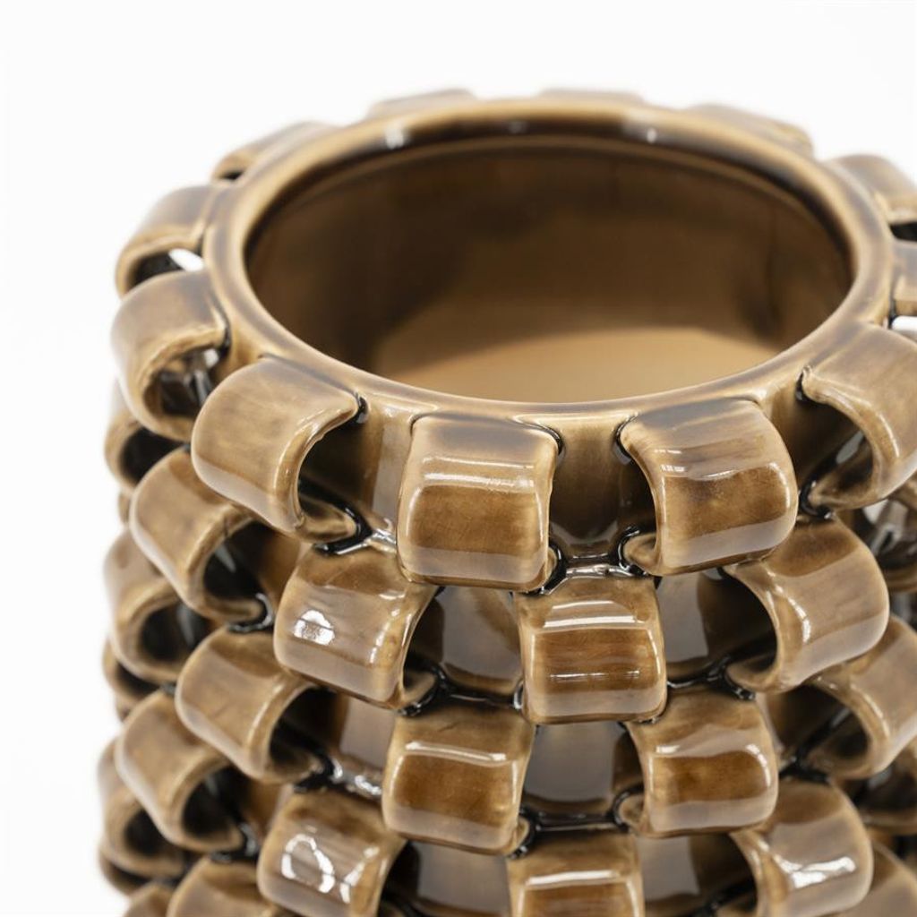 Med sina mått på 19,2x19,2x31,5 cm är vasen perfekt för att visa upp dina favoritblommor eller som en fristående dekorativ pjäs. Den bruna färgen tillför en naturlig och varm ton som enkelt kan integreras i olika färgscheman.