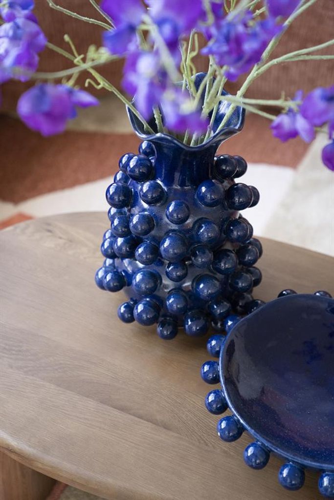 Denna imponerande blå vas av keramik med unik bubbeldesign förhöjer vilket rum som helst och fungerar perfekt som en iögonfallande dekoration.