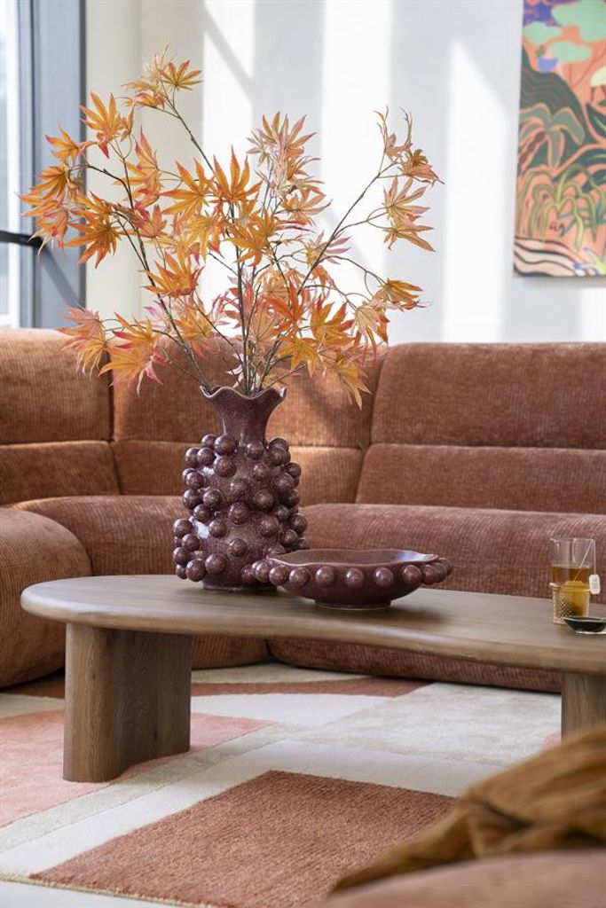 Elegant vas i burgundy röd med unik bobbled design, tillverkad i robust keramik.