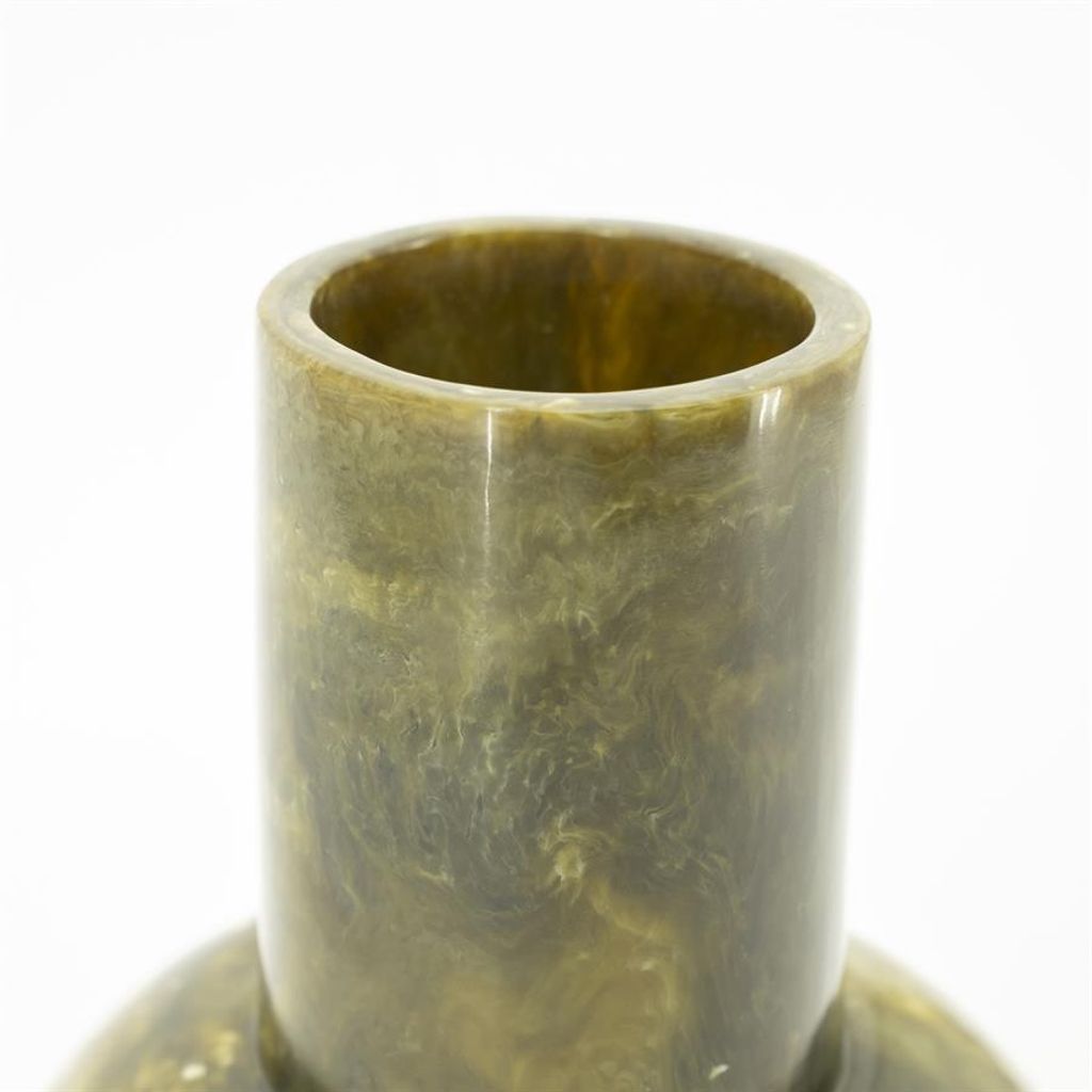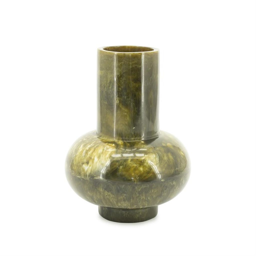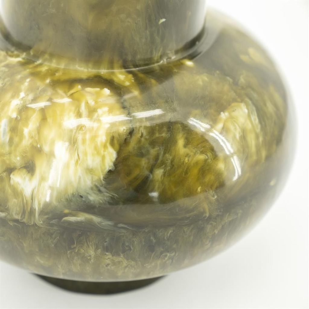 Elegant grön vas i resin med unik marmorering. Perfekt för modern inredning.