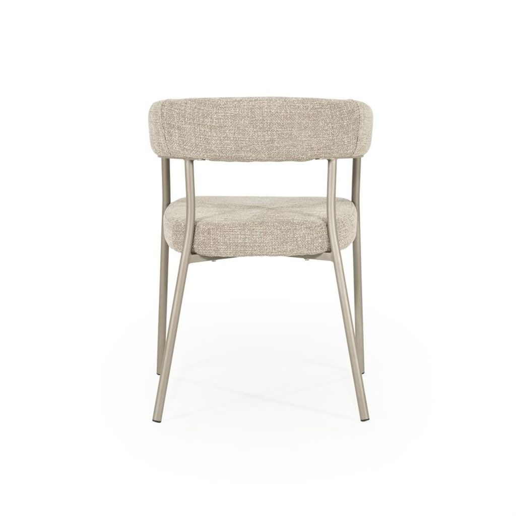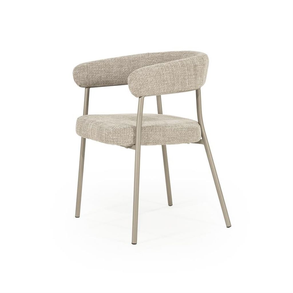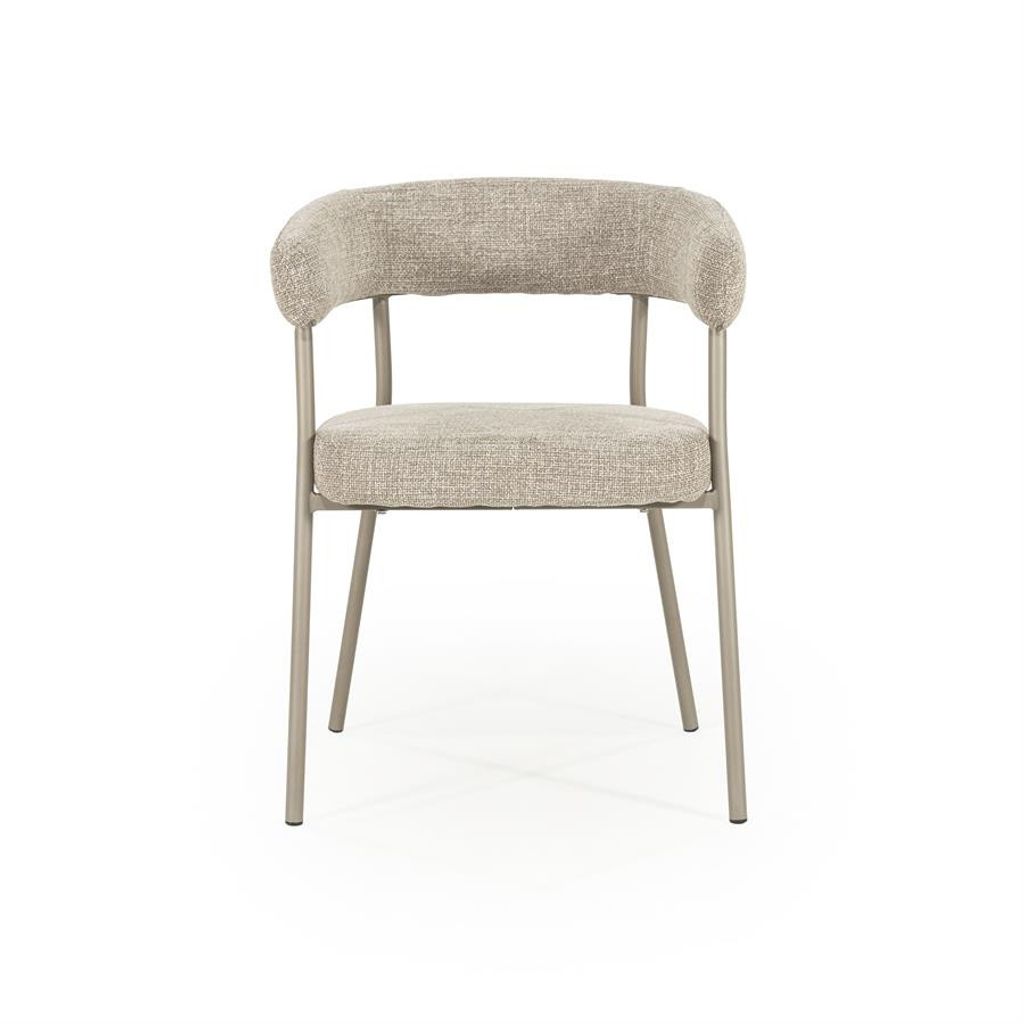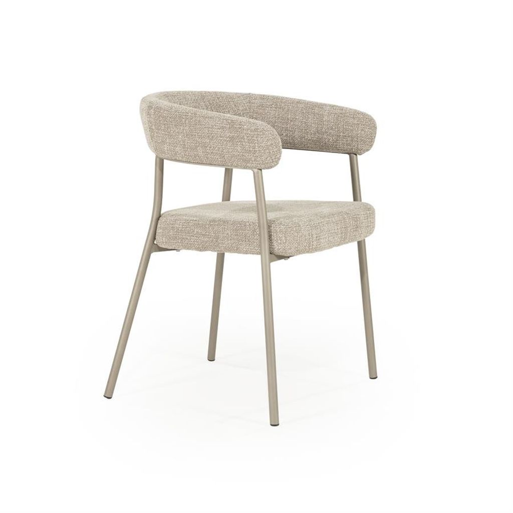 Elegant stol i mullvad nyans, tillverkad i metall och tyg, perfekt för stilfull inredning.