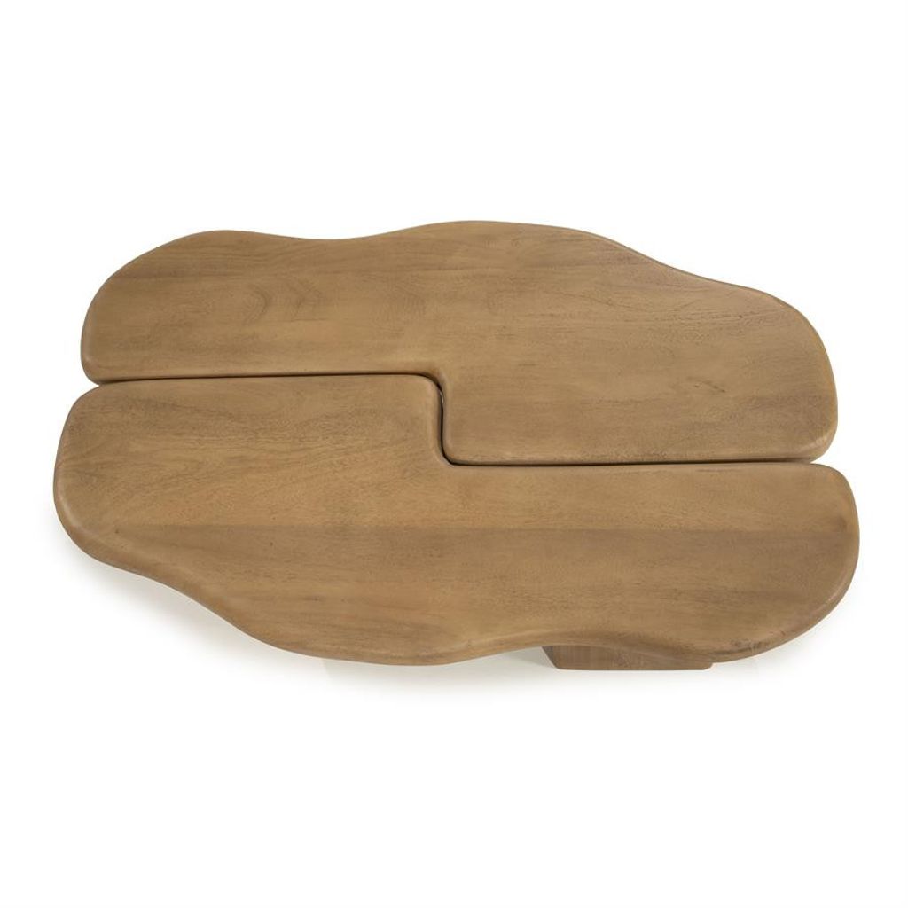 Bordet är perfekt för både vardagsrum och loungeområden, där det kan fungera som en central möbel i rummet. Dess naturliga träfärg tillför en jordnära känsla, medan den unika designen gör det till en samtalsstartare i varje hem.