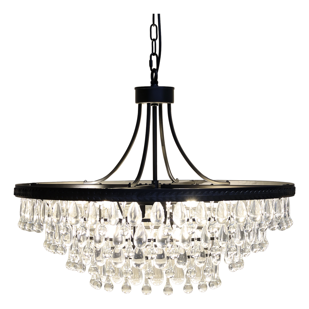 Elegant ljuskrona med handgjorda glasprismor och svart järnram. Perfekt för att förhöja atmosfären i ditt hem.