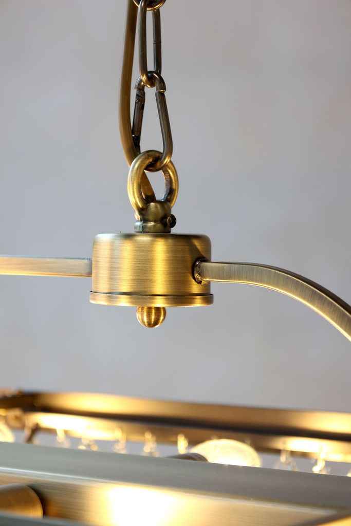 Chiq Antique Versailles ljuskrona är en elegant och sofistikerad belysningslösning för ditt hem. Med en finish i antik mässing erbjuder denna ljuskrona en tidlös charm som kompletterar både klassiska och moderna inredningar. Ljuskronan har droppformade glasprismor som fångar och bryter ljuset på ett spektakulärt sätt, vilket skapar en inbjudande och lyxig atmosfär i rummet.