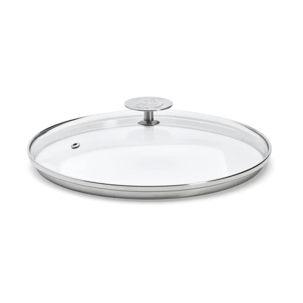 Alchimy glaslock från de Buyer är ett praktiskt och elegant tillbehör som hjälper dig att lyckas med allt från långkok till att hålla maten varm efter tillagning. Det är utformat för att passa alla grytor och kastruller i Alchimy och Affinity serien, med undantag för stekpannor. Locket är tillverkat i klart glas som ger god sikt under hela tillagningen och har en djup kant i rostfritt stål som gör att det ligger stadigt på plats. Handtaget är också i rostfritt stål och pryds med de Buyers logotyp. Locket tål ugnstemperaturer upp till tvåhundrafemtio grader Celsius och är ett mångsidigt köksredskap som snabbt blir oumbärligt i vardagslag.