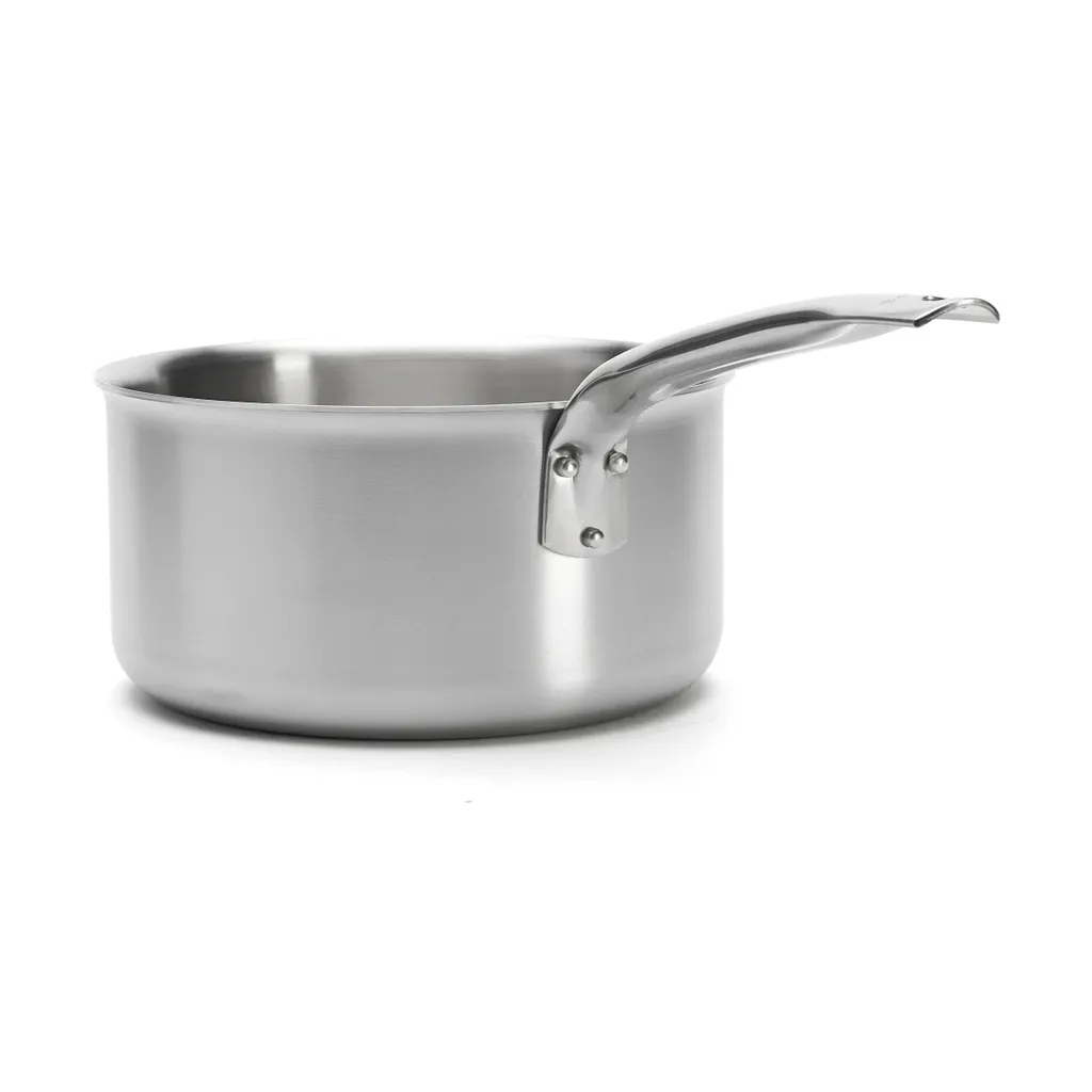 Alchimy kastrull i rostfritt stål från de Buyer är tillverkad med en tredelad konstruktion som ger jämn värmefördelning och utmärkt värmebehållning. Den passar alla värmekällor, inklusive induktion, och tål ugnstemperaturer upp till 200 grader Celsius. Kastrullen har ergonomiskt designade handtag som förblir svala under användning och är fast nitade för extra hållbarhet och stabilitet. Med praktiska måttmarkeringar inuti blir det enkelt att mäta direkt i kastrullen, och den kan diskas i diskmaskin för smidig rengöring. Perfekt för både professionella kockar och hemmabruk, tillverkad i Frankrike med fokus på högsta kvalitet.