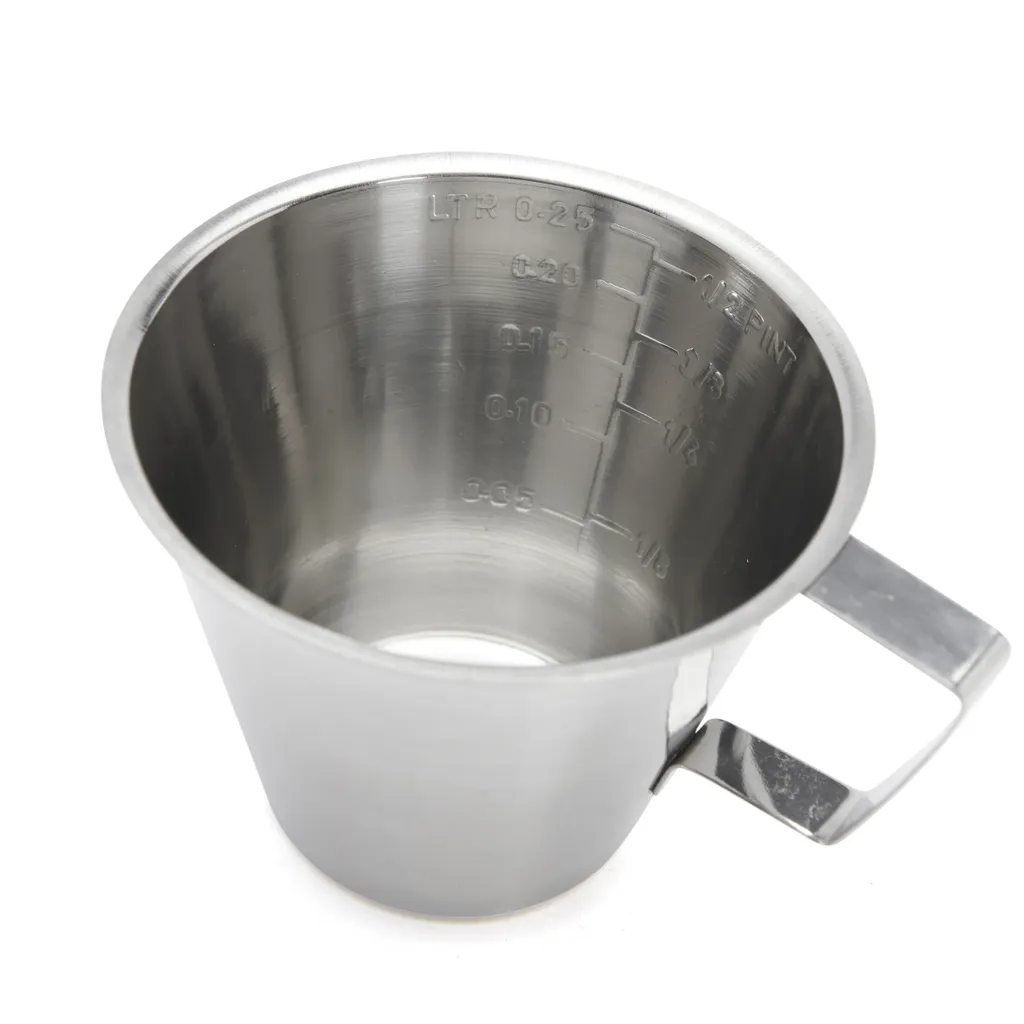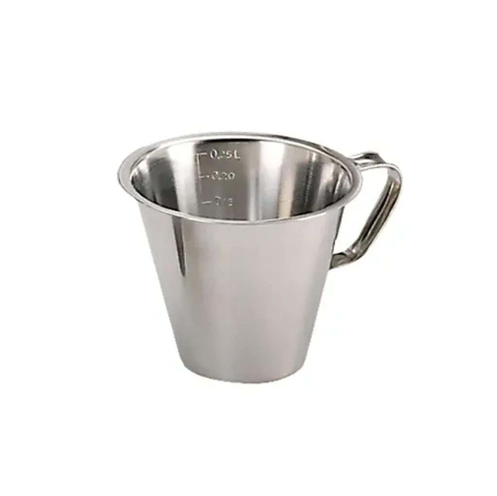 De Buyer liten måttkanna 0,25 l är ett praktiskt köksredskap i kompakt storlek som gör det enkelt att mäta upp både vätska och torra ingredienser med hög precision. Den är tillverkad i rostfritt stål vilket gör den tålig, hygienisk och enkel att rengöra samtidigt som den står stabilt på arbetsytan. Den lilla storleken gör den perfekt när du behöver exakta mått i mindre mängder, till exempel för bakning, såser eller dressingar. Tack vare den stilrena designen och hållbara kvaliteten är det en måttkanna som du kommer använda ofta och länge i köket.
