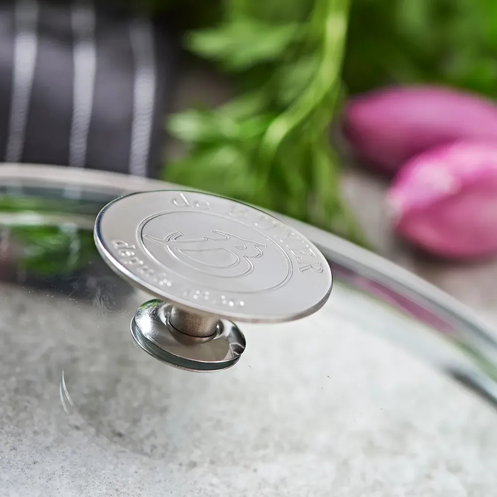 Detta glaslock från franska de Buyer är anpassat för stek- och kokkärl i serierna Milady och Choc Intense. Locket har en diameter på 24 cm och är tillverkat i slitstarkt glas som gör det enkelt att följa matlagningen utan att behöva lyfta på locket. En praktisk och hållbar köksdetalj som bevarar värmen, sparar energi och passar perfekt tillsammans med dina kärl från de Buyer.