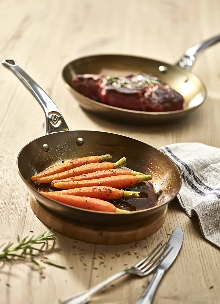 De Buyer Mineral B Pro stekpanna 20 cm är en kompakt och slitstark panna i kolstål som är idealisk för mindre portioner eller när du vill steka ägg, grönsaker eller andra råvaror med precision. Kolstålet värms snabbt upp, tål höga temperaturer och utvecklar med tiden en naturlig non stick yta som förbättras ju mer du använder den. Pannan är helt fri från kemikalier och skyddad med ett tunt lager bivax som motverkar rost. Det ergonomiska handtaget i rostfritt stål ligger bekvämt i handen och gör att pannan fungerar lika bra på spisen som i ugnen. En hållbar kvalitetsprodukt som levererar professionella resultat i litet format.