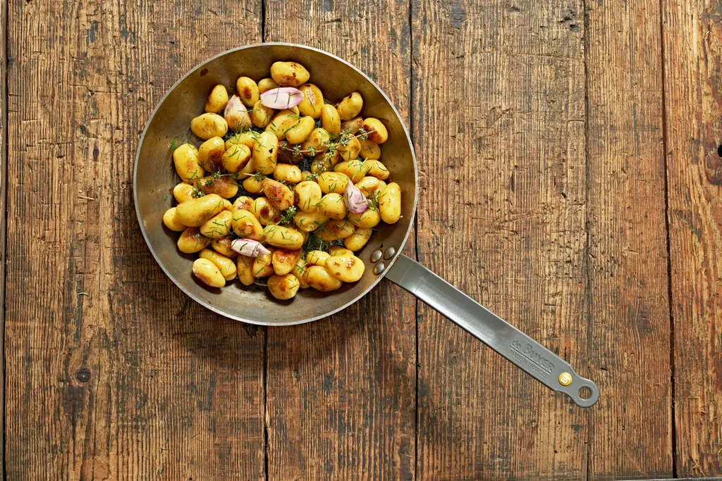 De Buyer Mineral B stekpanna 24 cm är en slitstark panna i kolstål som ger en autentisk stekyta och framhäver råvarornas smak. Den värms snabbt upp, tål höga temperaturer och utvecklar en naturlig non stick yta ju mer den används, vilket gör den bättre med tiden. Pannan är helt fri från kemikalier och skyddad med ett tunt lager bivax som motverkar rost och påskyndar inbränningen. Med sin mångsidiga storlek på 24 cm är den perfekt för både vardagsmatlagning och mindre portioner. En hållbar kvalitetsprodukt som levererar professionella resultat och blir en pålitlig följeslagare i köket under många år.