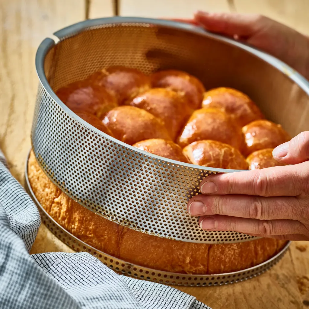 De Buyer springform med avtagbar botten Ø24 cm är en klassisk och praktisk bakform som gör det enkelt att lyckas med allt från saftiga tårtor och mjuka kakor till cheesecakes och pajer. Formen är tillverkad i stål som leder värmen jämnt och ger en fin gräddning, medan den slitstarka non stick beläggningen gör att bakverken lossnar lätt och att rengöringen går snabbt. Den avtagbara botten gör det smidigt att lyfta ut kakan utan att den går sönder och ger en snygg presentation. En pålitlig form i perfekt storlek som kombinerar funktion, kvalitet och hållbarhet för både vardagsbakning och festliga tillfällen.