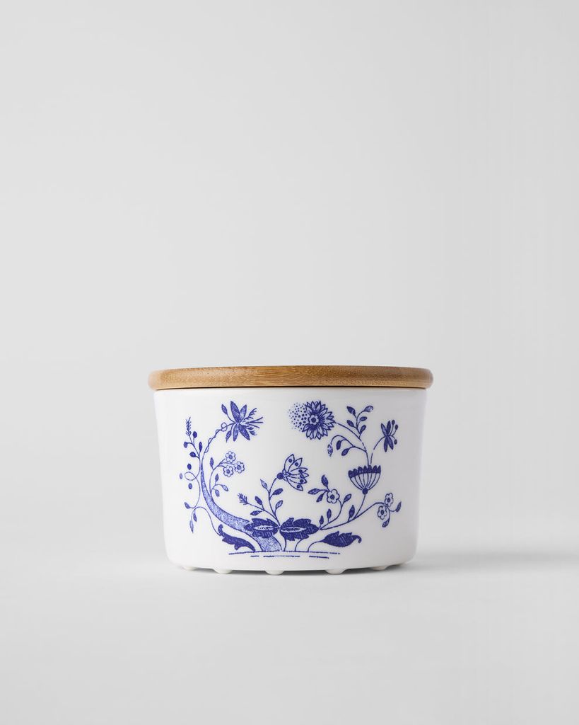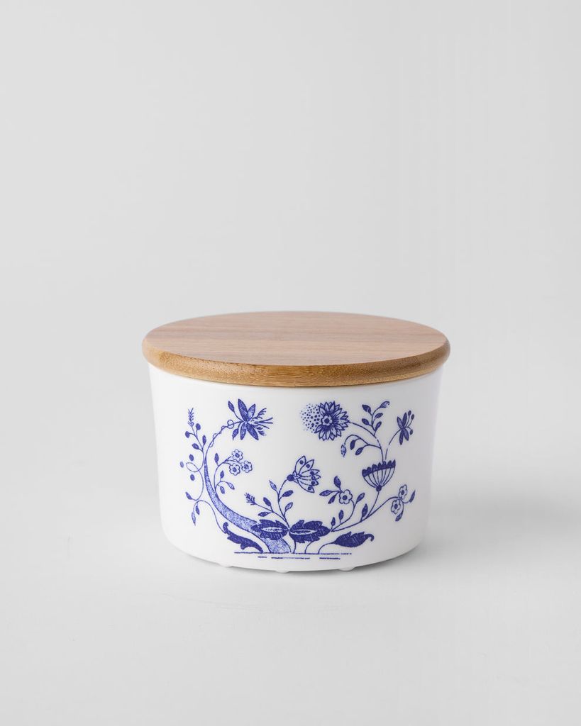 Tillverkad i högkvalitativt benporslin, är denna burk både slitstark och vacker. Den rymmer perfekt mängd för t.ex. socker, te, nötter, kryddor eller små snacks. Locket sluter tätt och skyddar innehållet från fukt och dofter. Med sin kompakta storlek är den lätt att placera och stapla, samtidigt som den adderar charm till varje yta den står på. Passar både det traditionella och moderna köket.