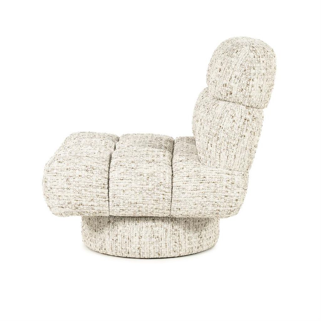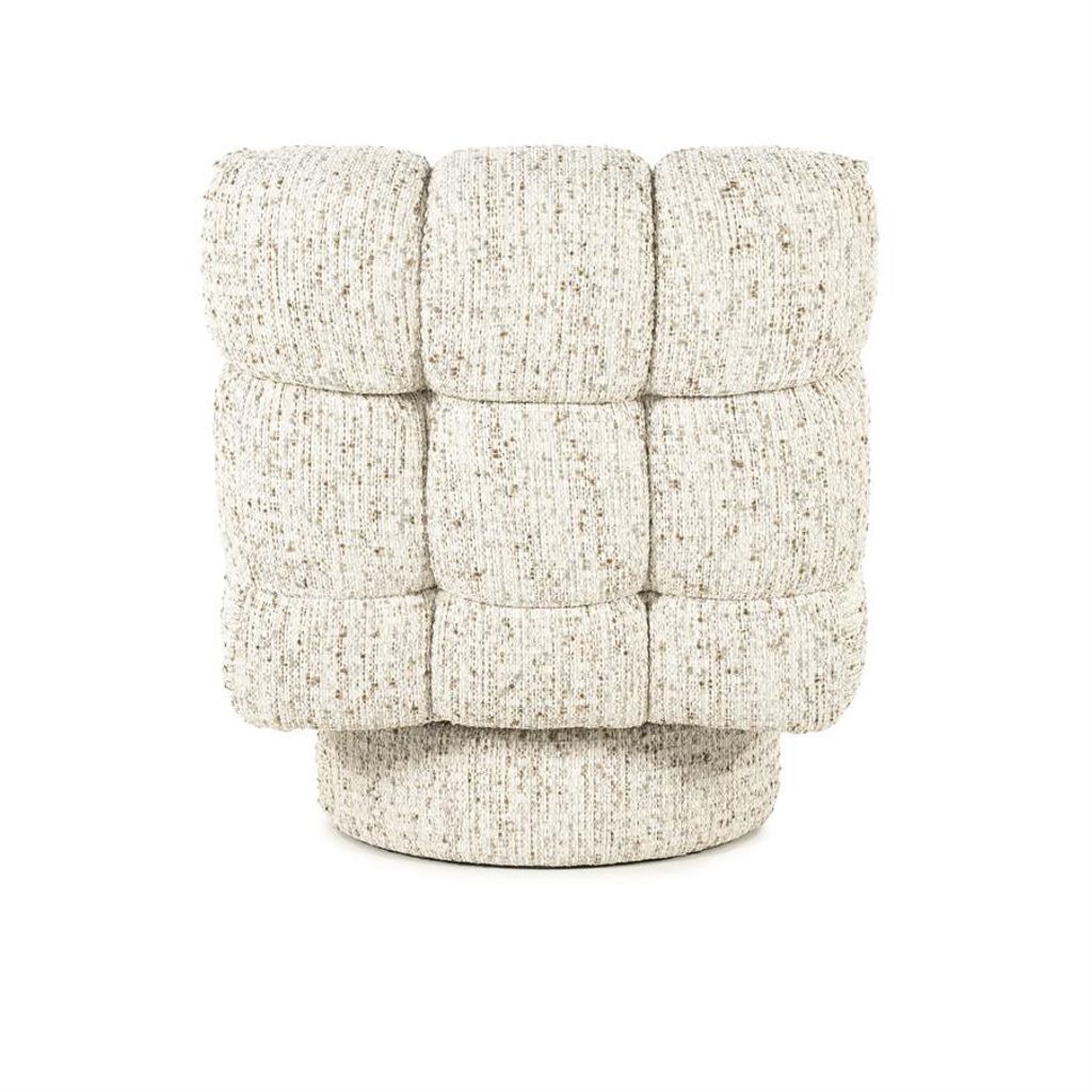 Eleonora Fåtölj Fenna i beige Vive är en perfekt kombination av stil och komfort. Dess eleganta design och noggrant utformade ryggstöd ger inte bara estetisk tilltalande utan också stöd för din kropp. Fåtöljen är klädd i ett mjukt, beige tyg med en texturerad yta som tillför en lyxig känsla till varje rum. Den stabila, runda basen ger en modern touch och gör den idealisk för både klassiska och moderna inredningar. Placera den i ditt vardagsrum, sovrum eller kontor och njut av en plats att koppla av på.