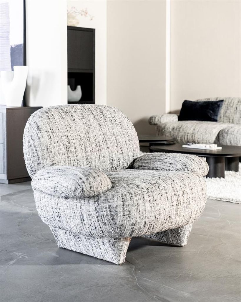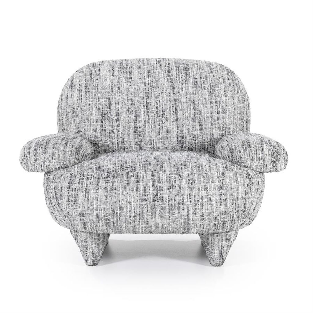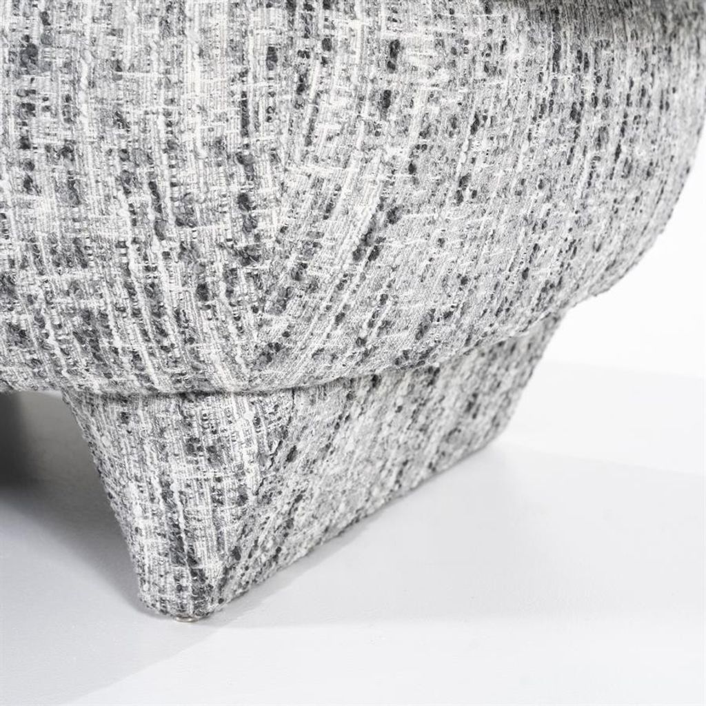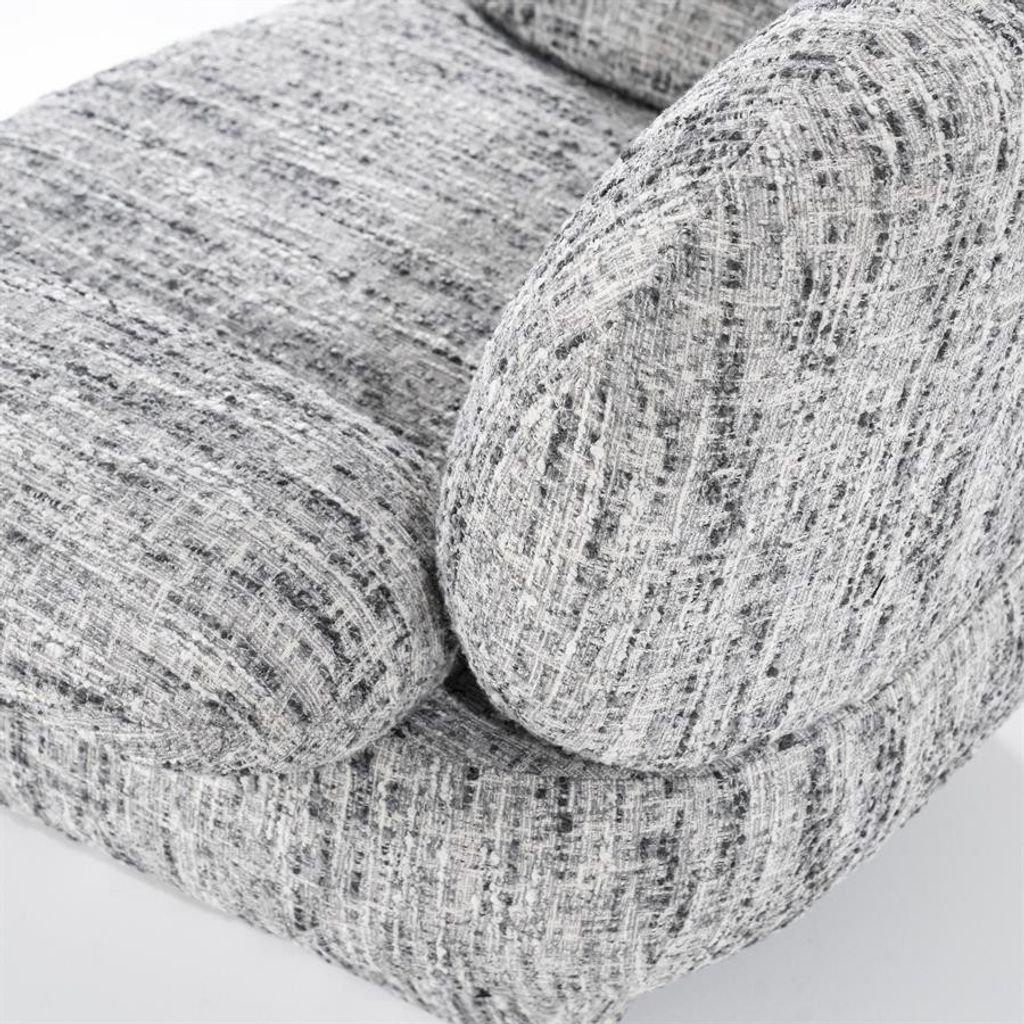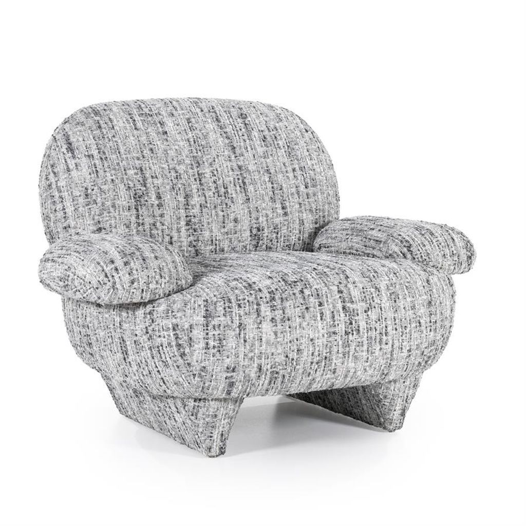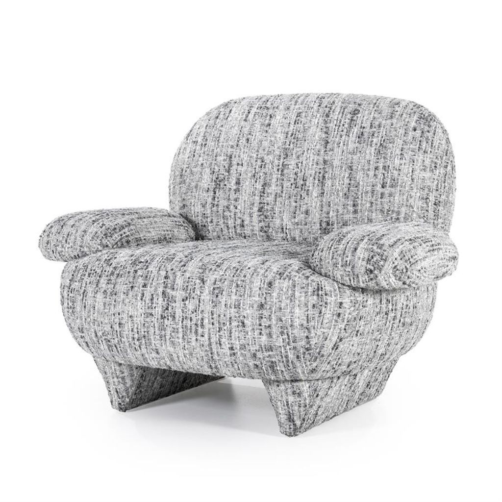 Elegant och bekväm fåtölj i grått tyg med unik textur, perfekt för moderna hem.
