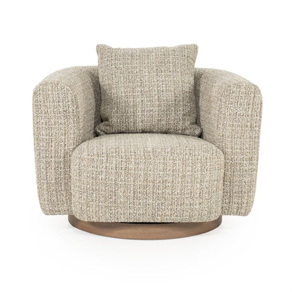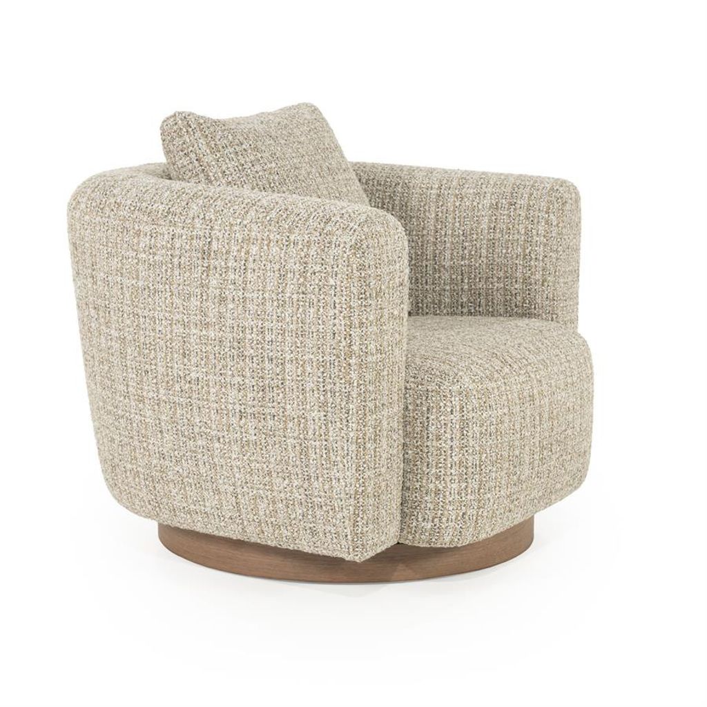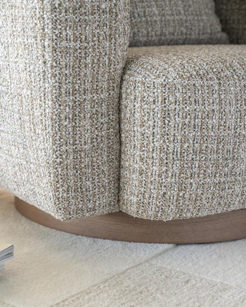 Eleonora Fåtölj Jordan i taupe är ett elegant tillskott till ditt hem. Klädd i ett mjukt och hållbart tyg med subtila mullvadsfärgade nyanser, erbjuder denna fåtölj både stil och komfort. Den rundade designen med en stabil träbas ger ett modernt och inbjudande uttryck, perfekt för både vardagsrum och läsrum. Slappna av i denna fåtölj och njut av dess tidlösa charm och bekväma sits som gör den till ett favoritval i ditt hem.