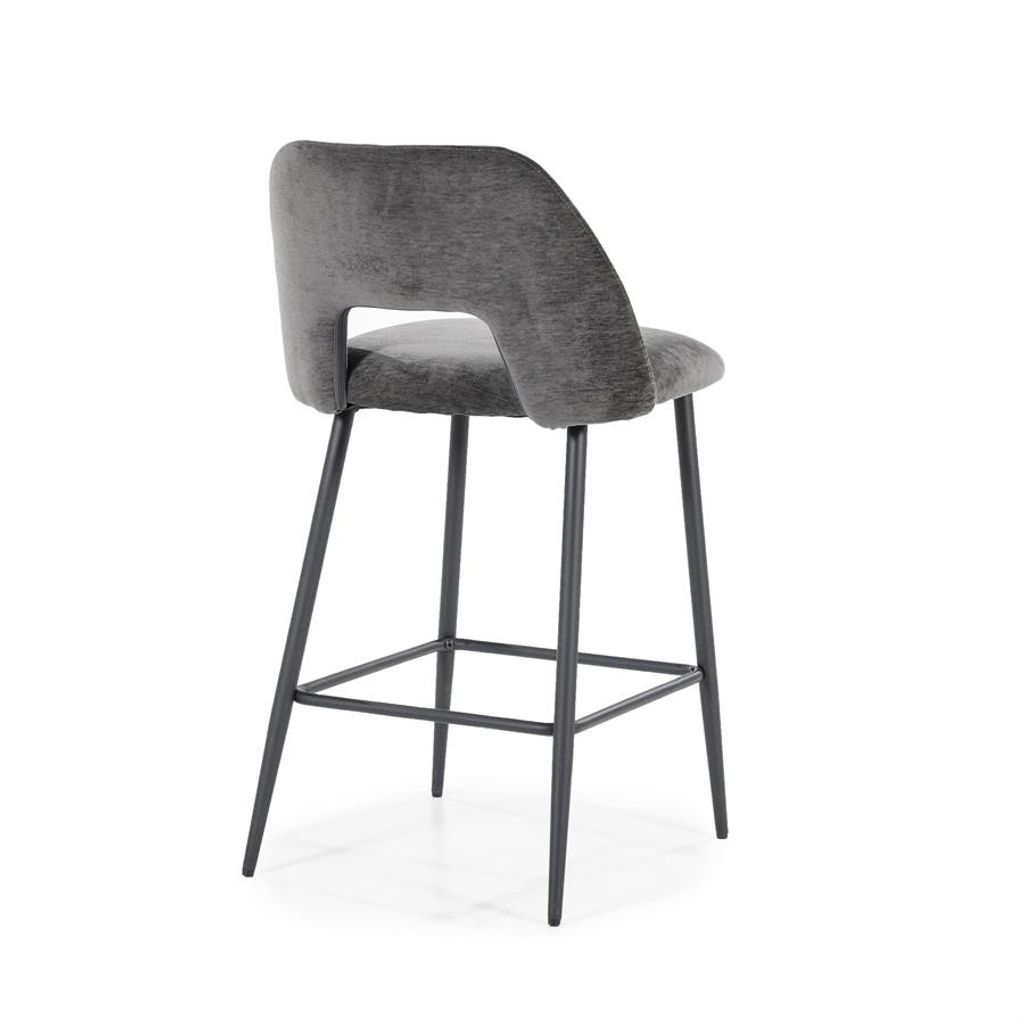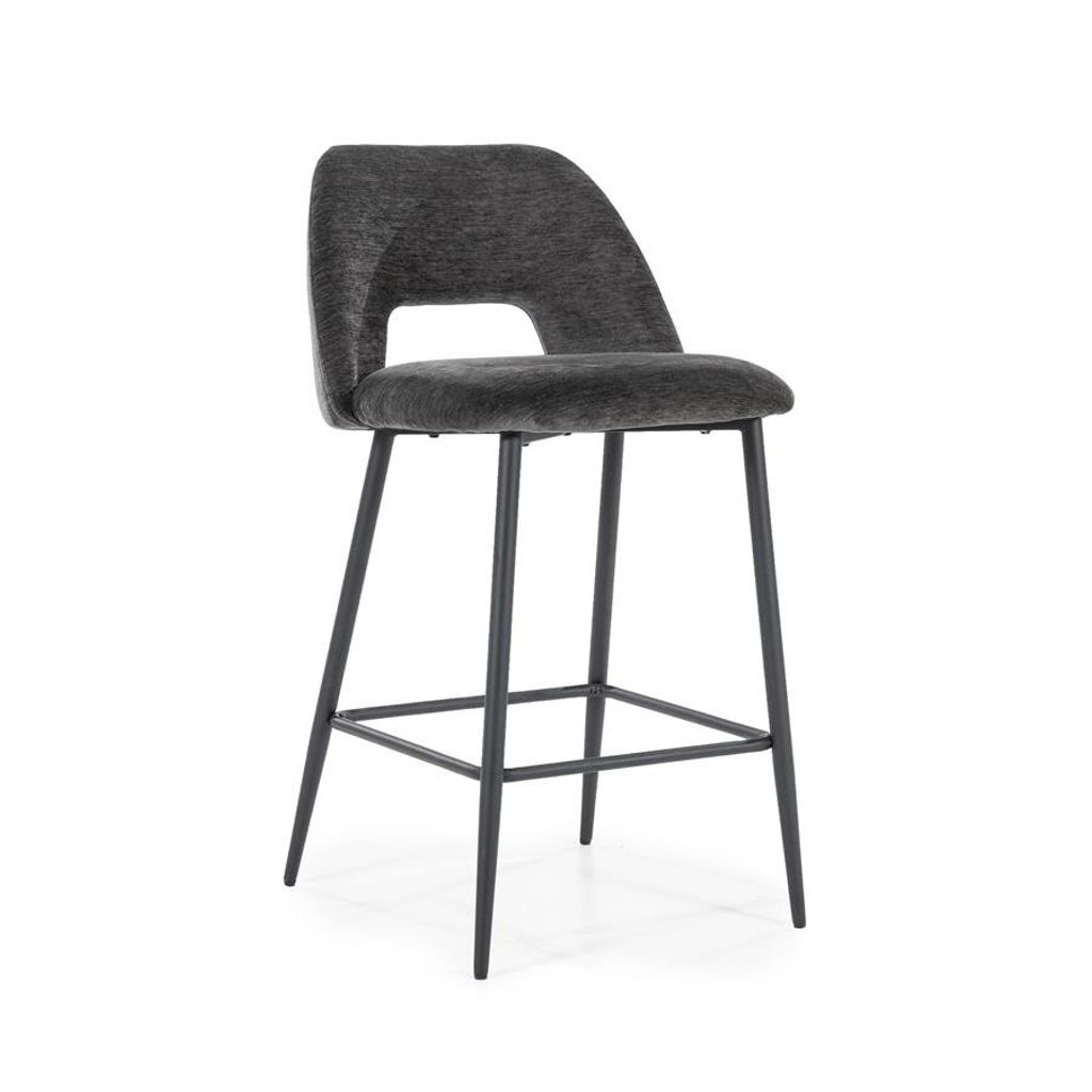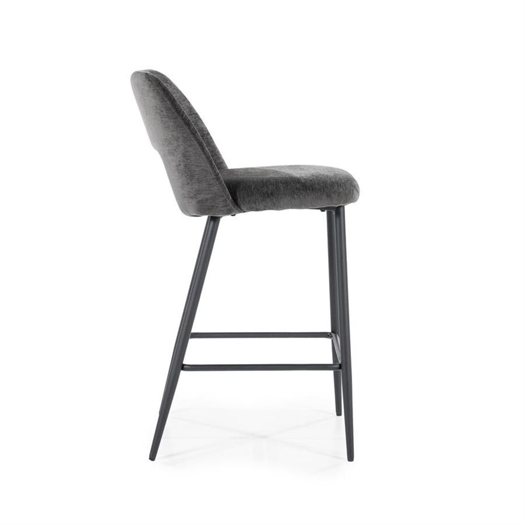 Elegant barstol med antracitfärgad tygsits och smala metallben, perfekt för ett stilrent kök eller bar.