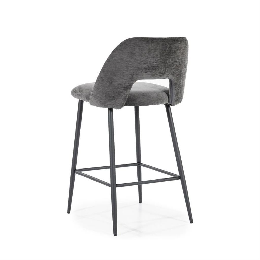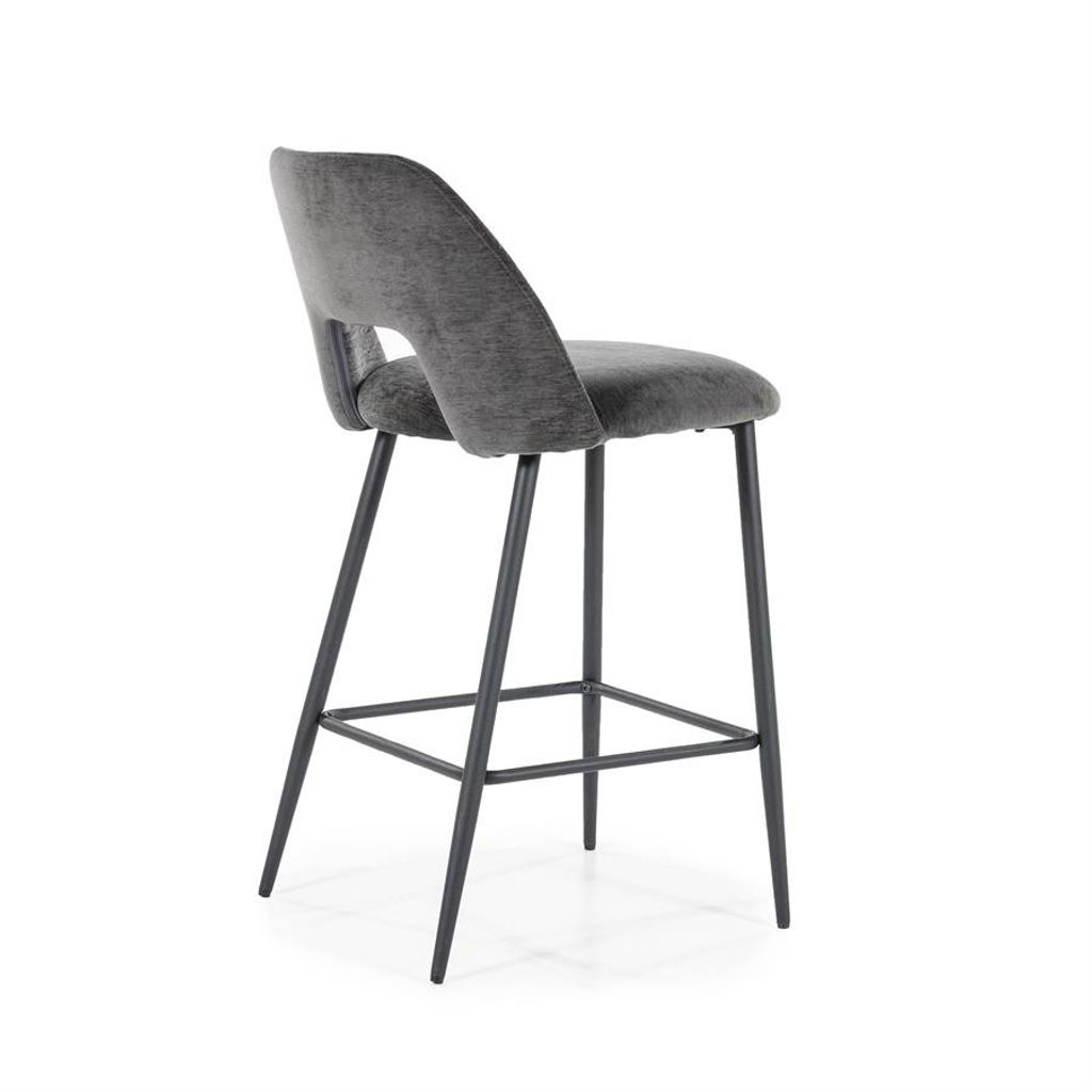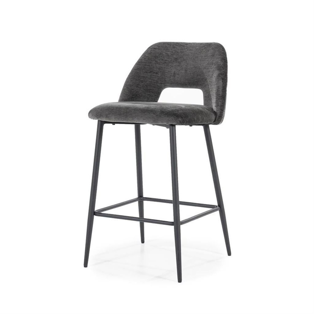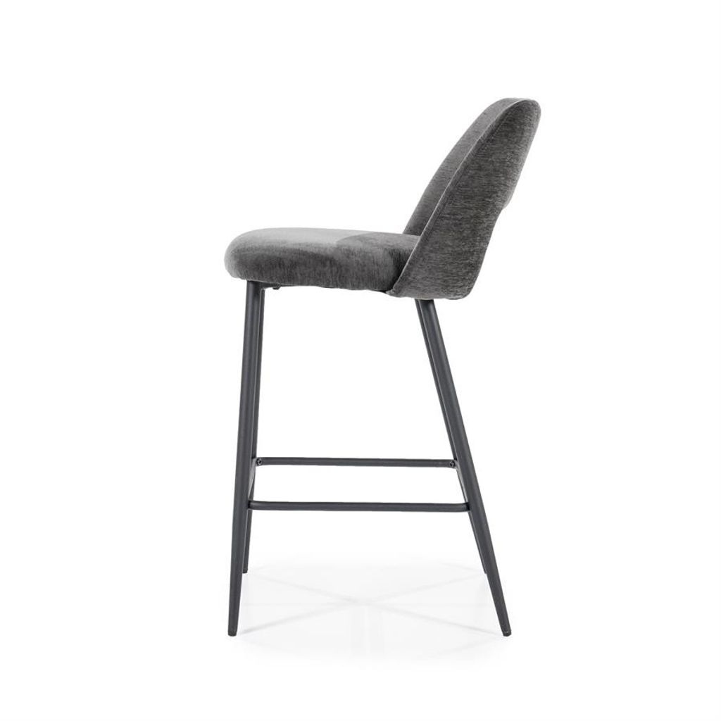 Elegant barstol med antracitfärgad tygsits och smala metallben, perfekt för ett stilrent kök eller bar.