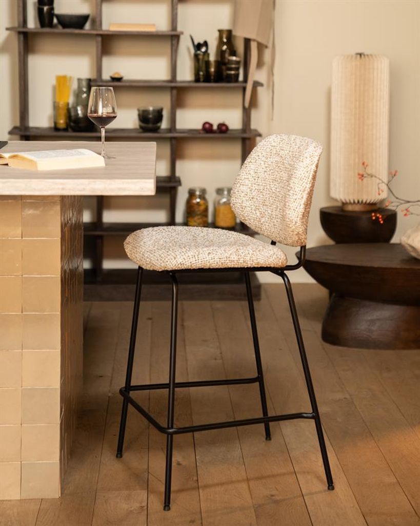 Eleonora Barstol Jon kombinerar stilren design med hög komfort. Den mjuka taupefärgen och robusta metallramen ger en modern touch till ditt hem.