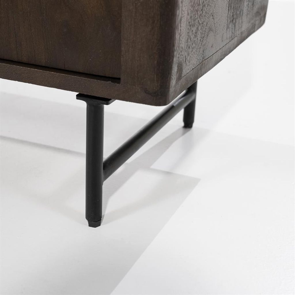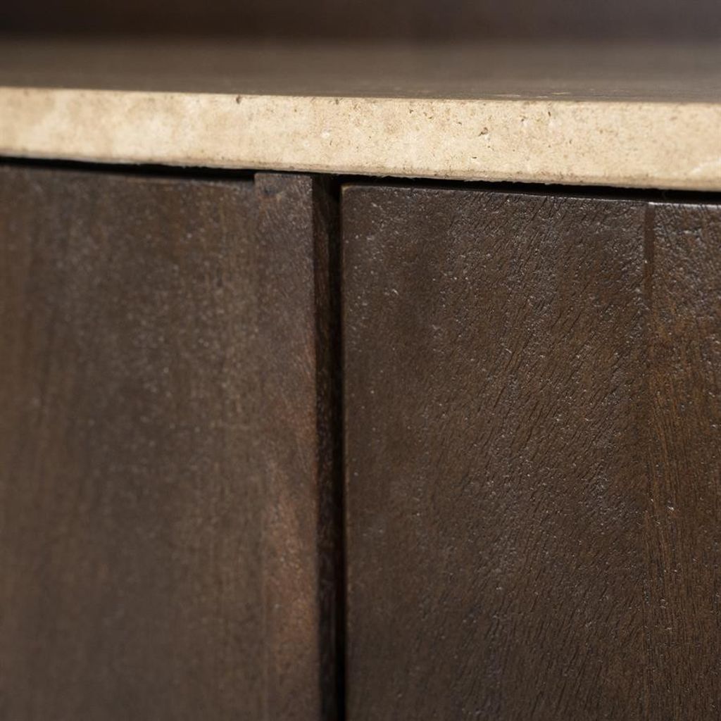 Eleonora Bokhylla Lio är en elegant och funktionell möbel som kombinerar stil med praktiska förvaringslösningar. Denna stora bokhylla i robust brunt trä erbjuder flera hyllplan och två rymliga skåp, vilket gör den idealisk för att organisera och visa upp dina favoritböcker och dekorativa föremål. Dess slående design med en mörk finish och subtila detaljer skapar en varm och inbjudande atmosfär i ditt hem. Med en stabil metallbas vilar bokhyllan tryggt på golvet, vilket ger säkerhet och långvarig hållbarhet.