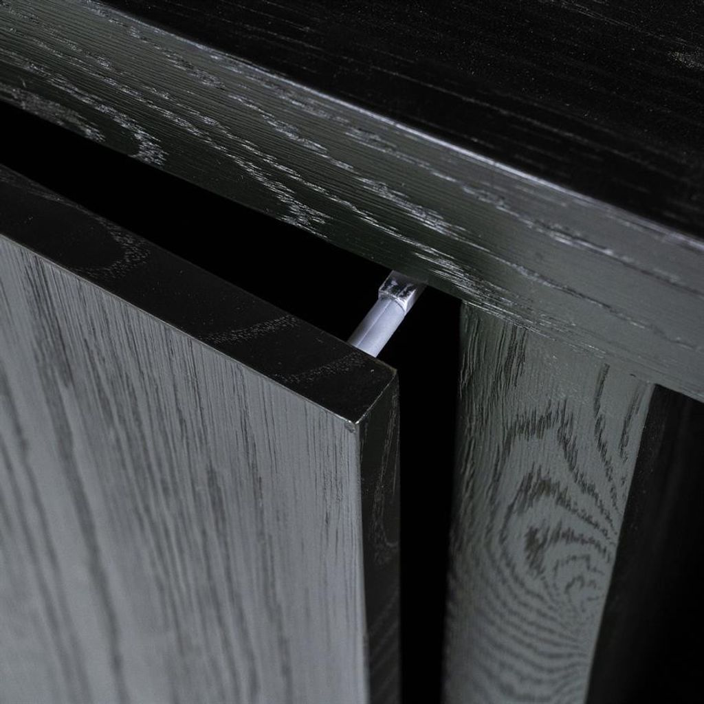 Elegant skåp i svart ek med modern design och flexibla förvaringslösningar. Perfekt för stilfull organisation.