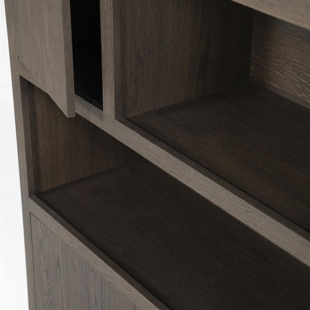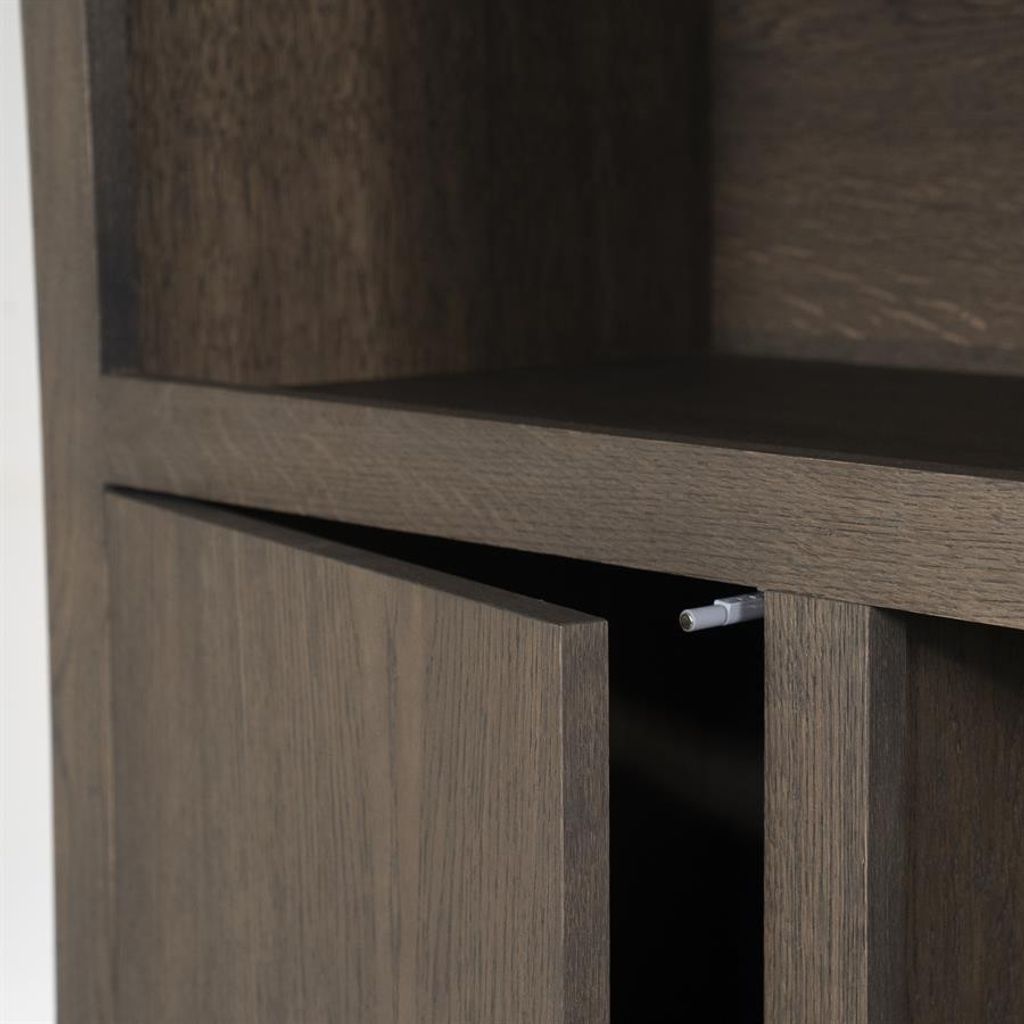 Stilrent skåp i brun ekfaner, perfekt för både förvaring och visning av dina favoritsaker.