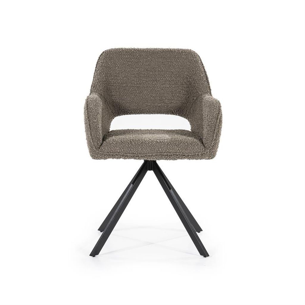 Eleonora Stol Fabio erbjuder en modern design med ett elegant brunt tyg och robusta, svarta ben. Perfekt för både matsal och vardagsrum.