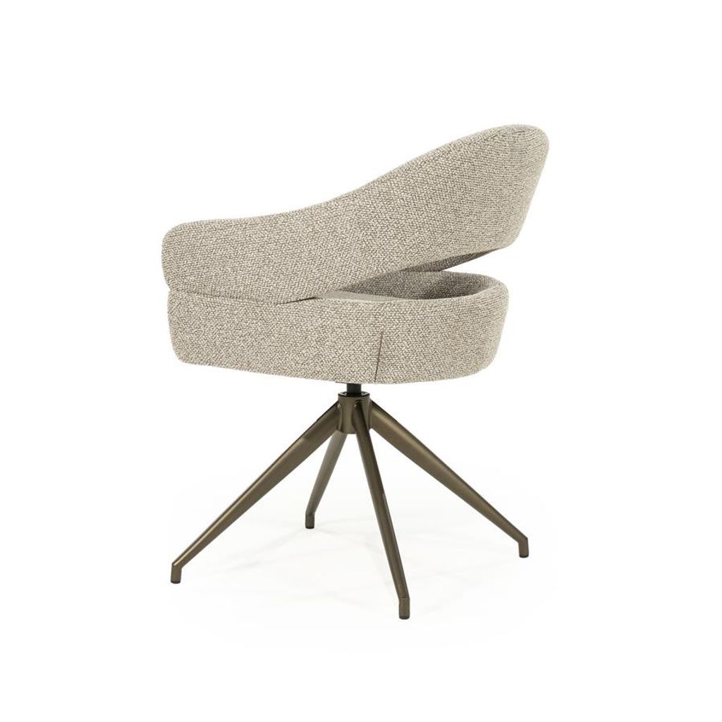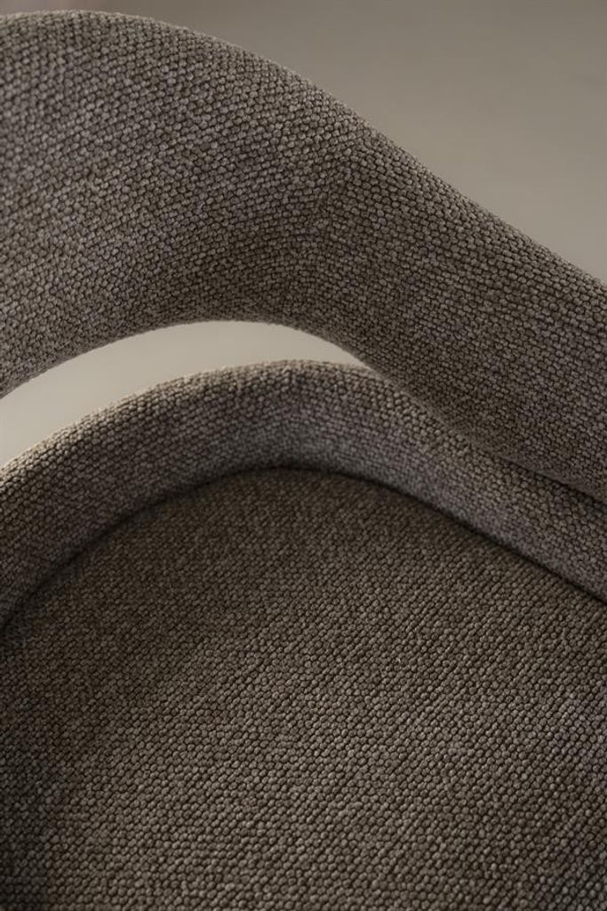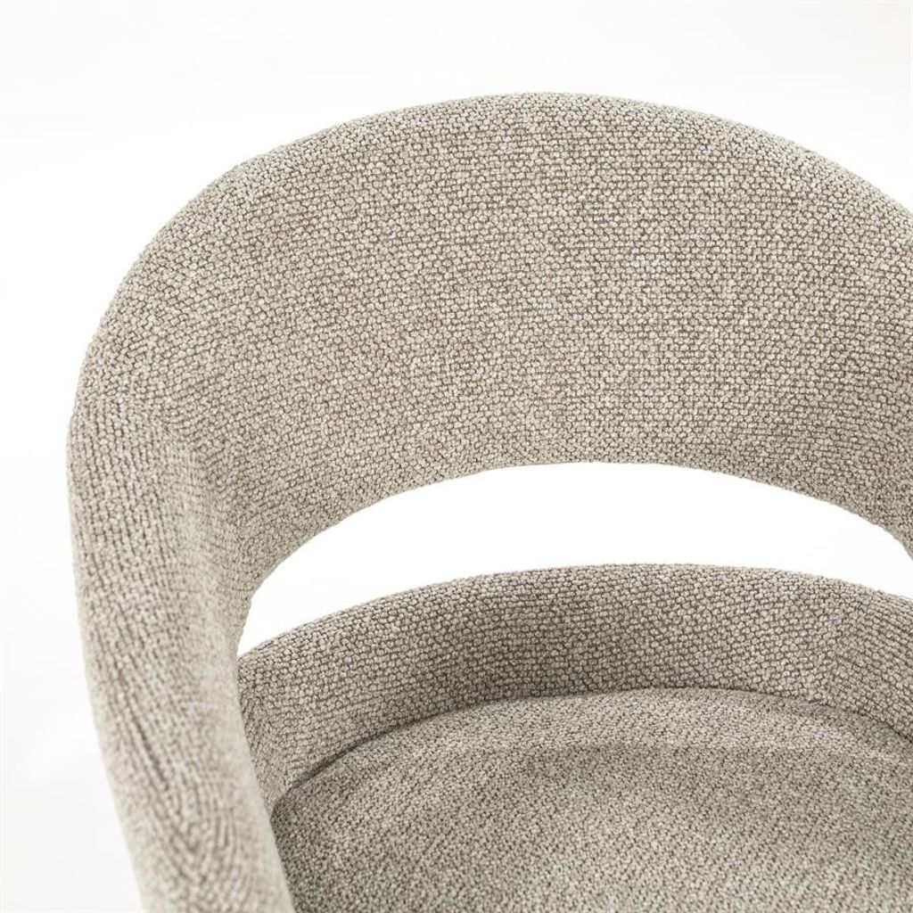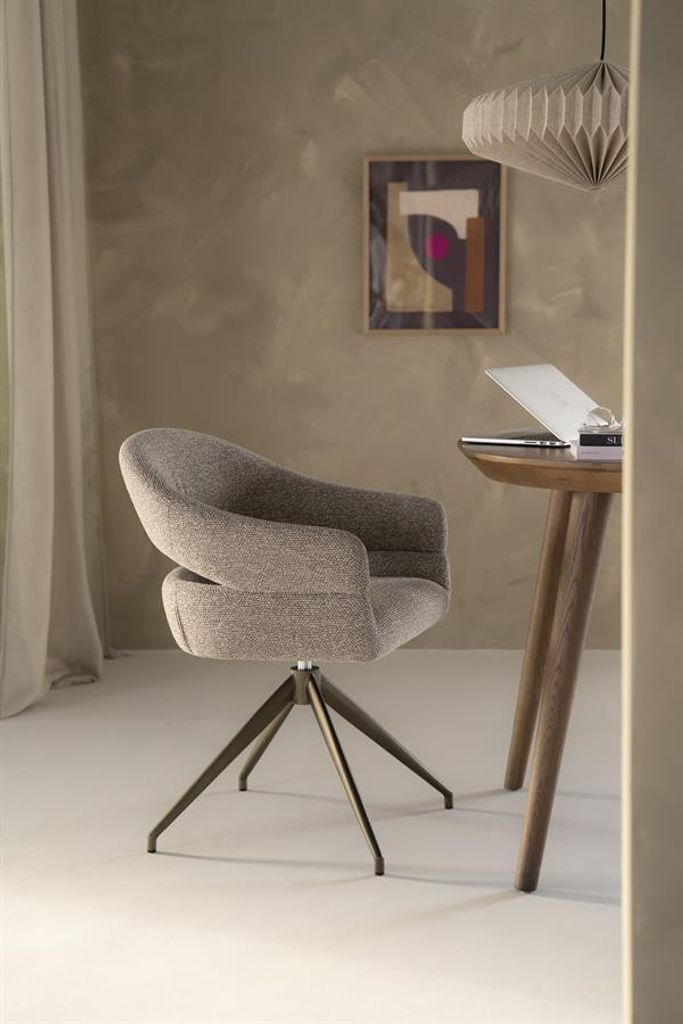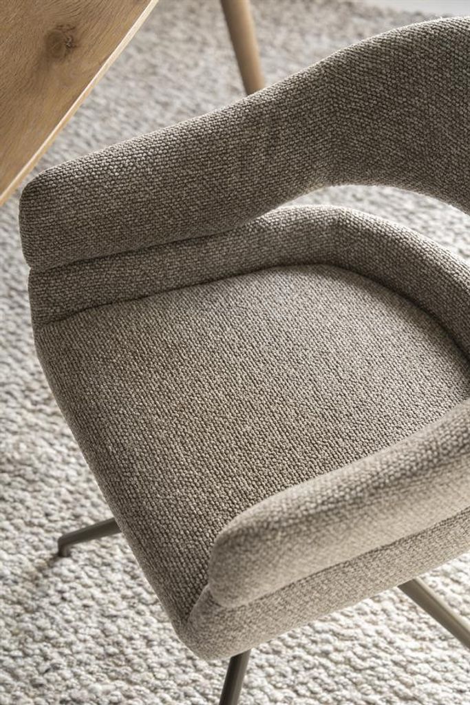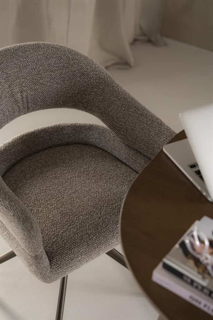 Eleonora Stol Hailey i taupe erbjuder modern elegans och komfort med sin mjuka tygklädsel och stilrena metallben, perfekt för både arbetsrum och matsal.