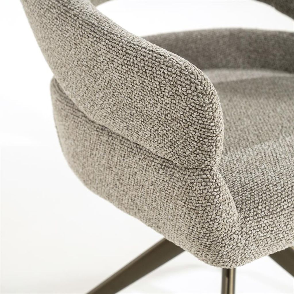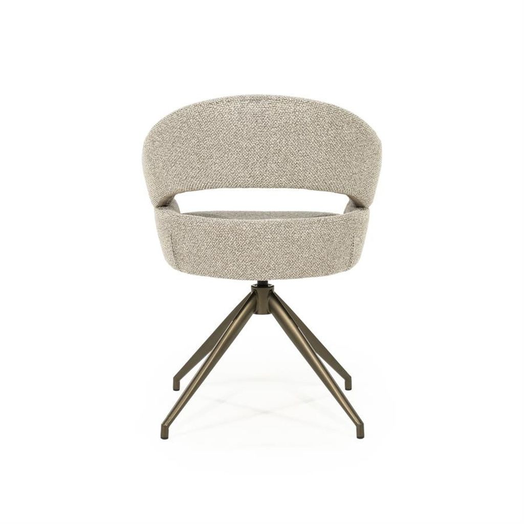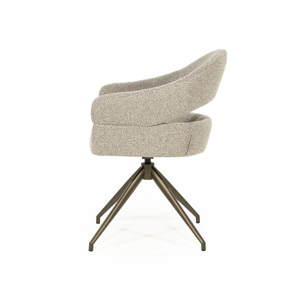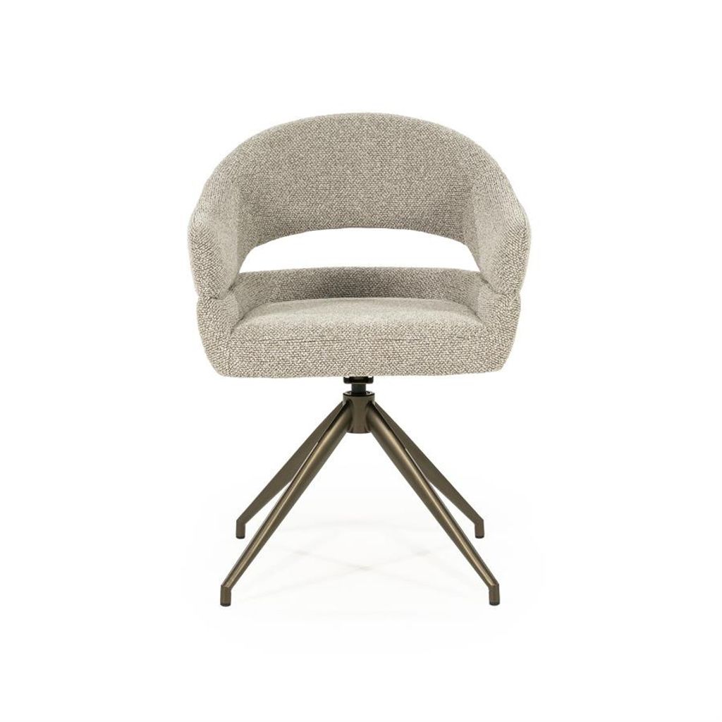 Eleonora Stol Hailey i taupe erbjuder modern elegans och komfort med sin mjuka tygklädsel och stilrena metallben, perfekt för både arbetsrum och matsal.