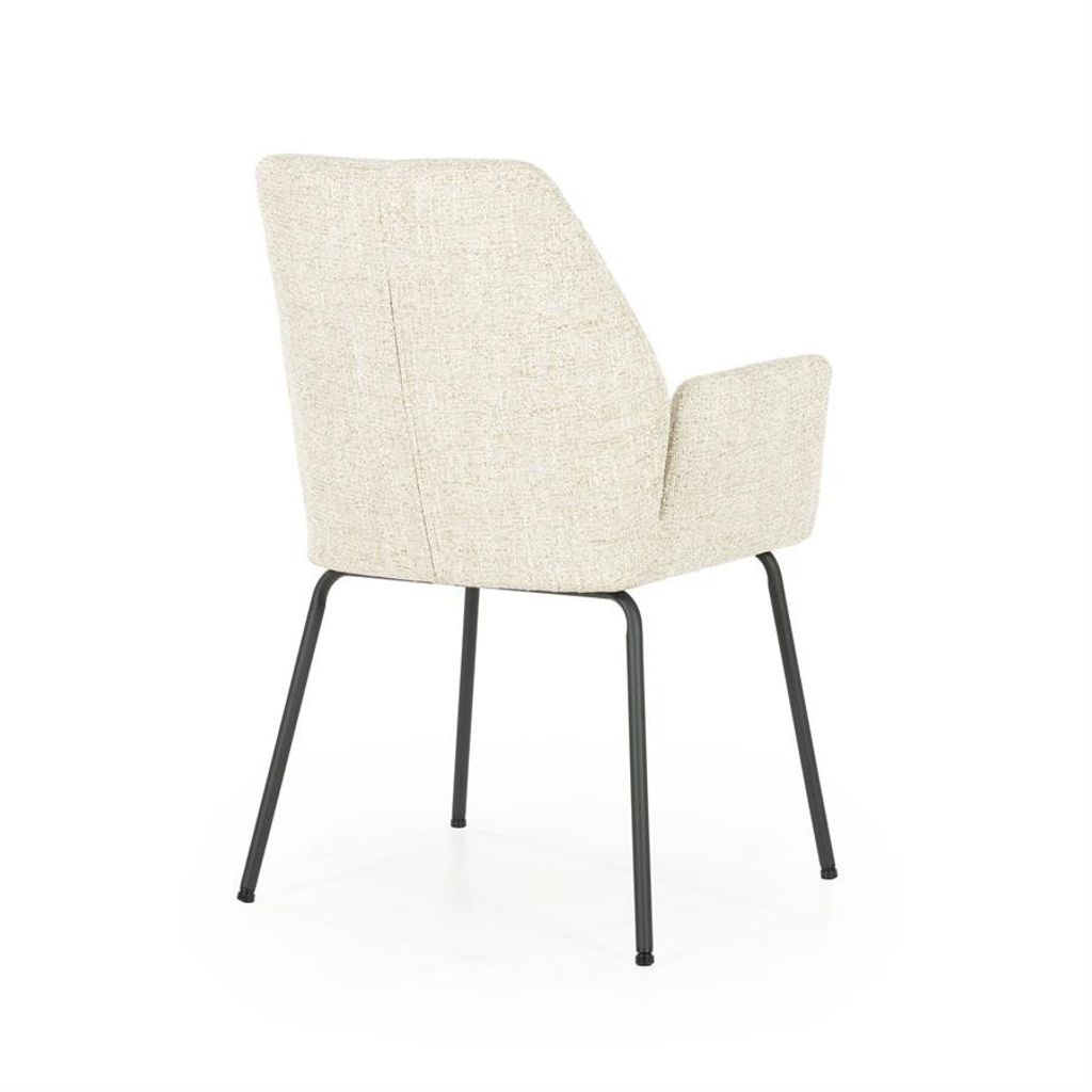 Elegant och bekväm stol i beige tyg med robusta svarta ben, perfekt för moderna hem.