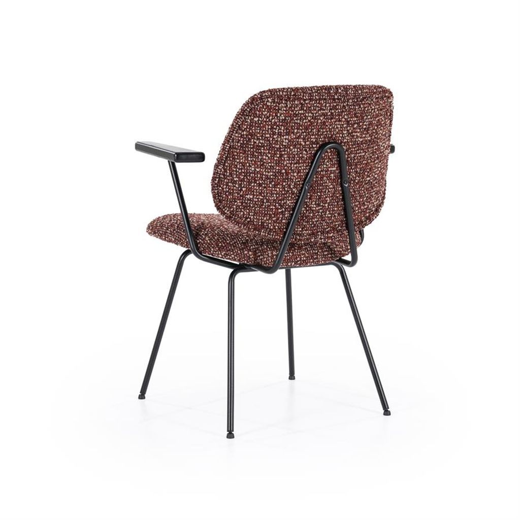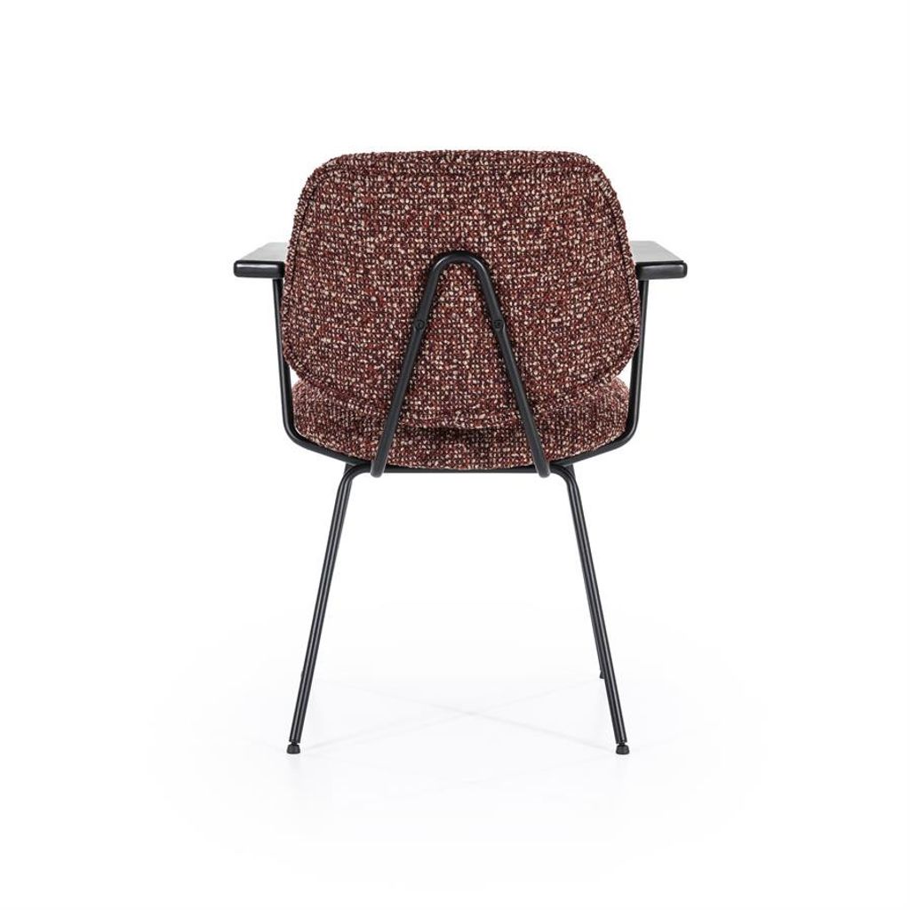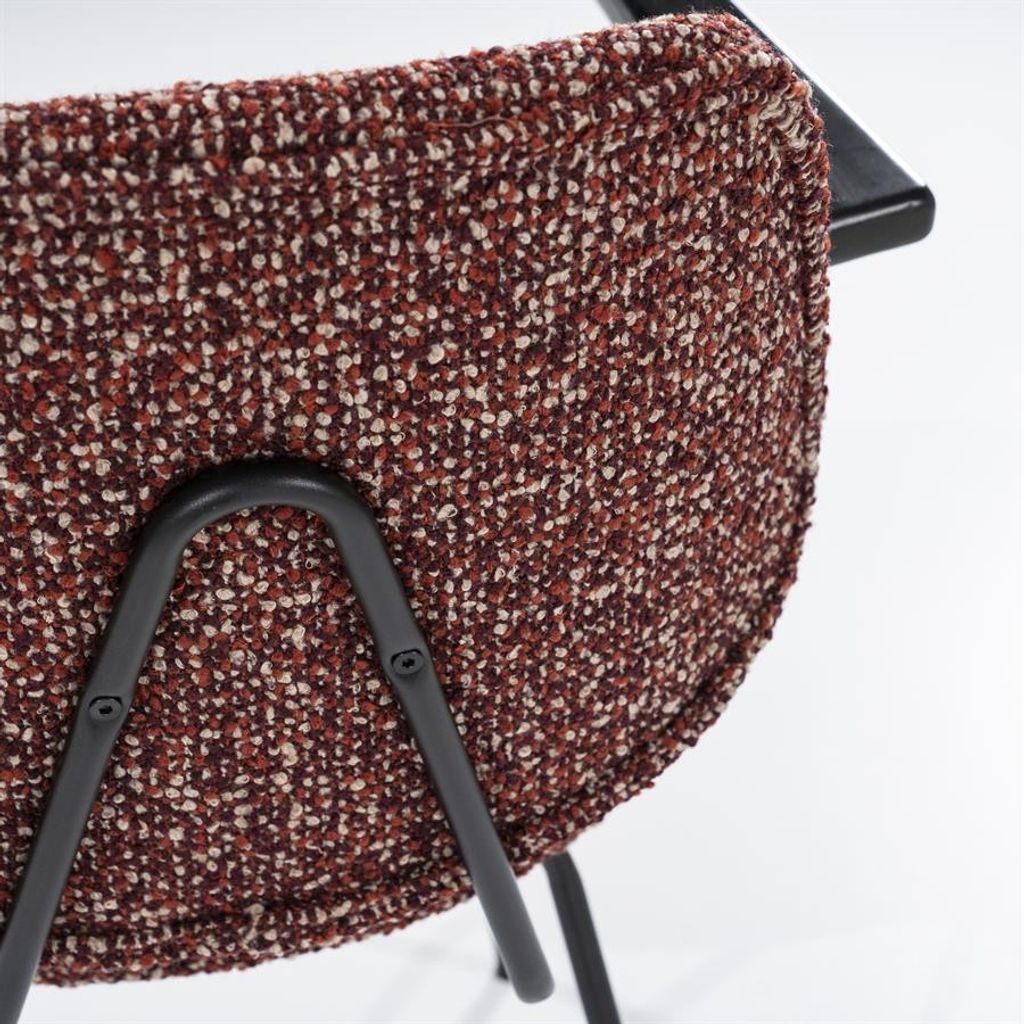 Eleonora Stol Jon med armstöd kombinerar elegans och komfort. Den röda Maywood-klädseln ger en varm och inbjudande känsla, medan de svarta, pulverlackerade metallbenen säkerställer en stabil och hållbar konstruktion. Bekväma armstöd i trä ger extra stöd, vilket gör stolen perfekt för både middagar och avkoppling vid skrivbordet. En tidlös design som passar in i moderna och klassiska miljöer.