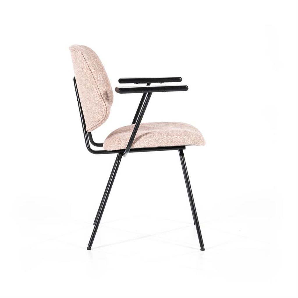 Elegans möter komfort i Eleonora Stol Lynn, med en mjuk rosa klädsel och stilrena svarta ben. Perfekt för modern inredning.