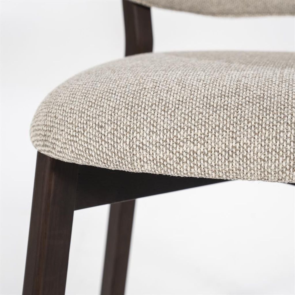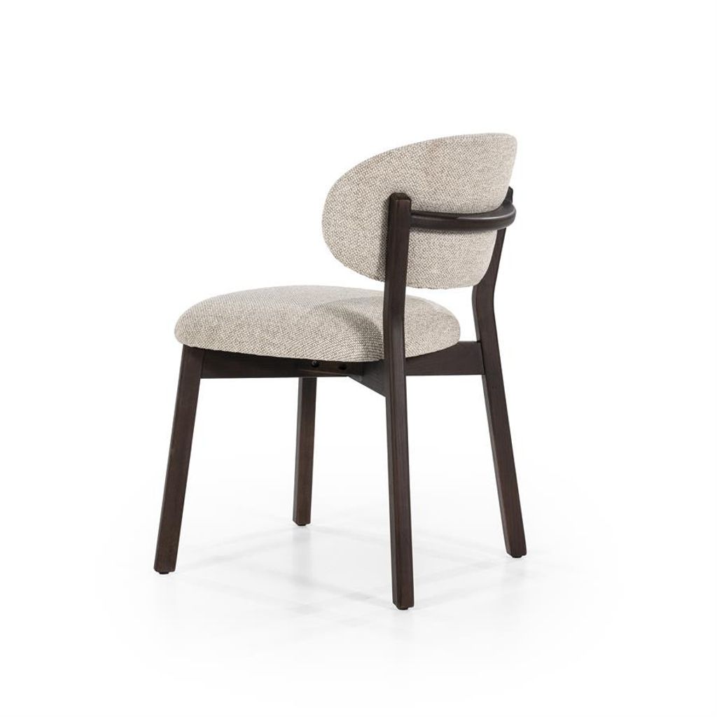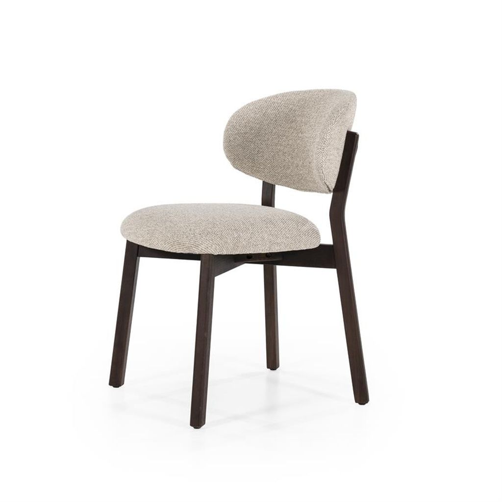 Elegant och bekväm stol med vacker taupe klädsel och stabil brunsvart stomme. Perfekt för både matplats och vardagsrum.