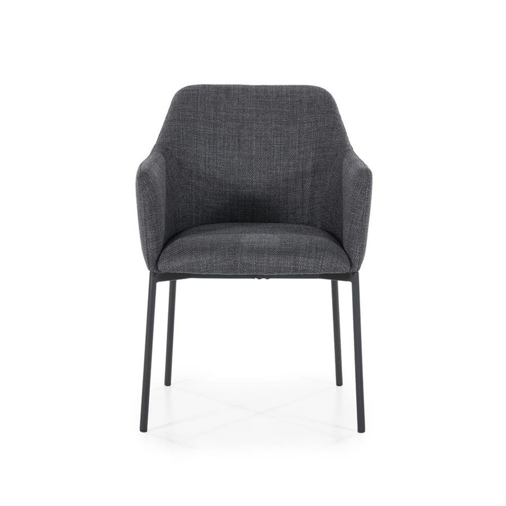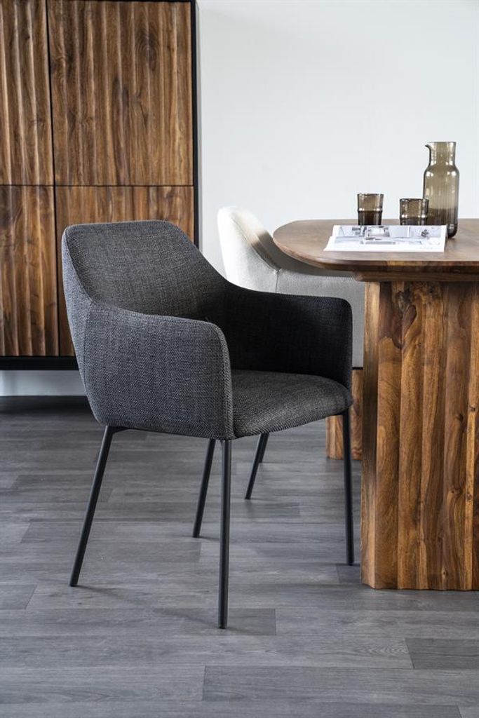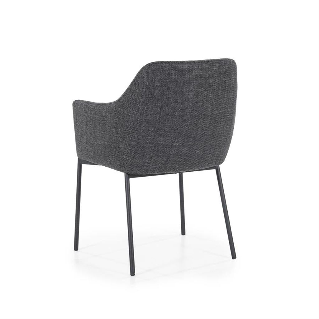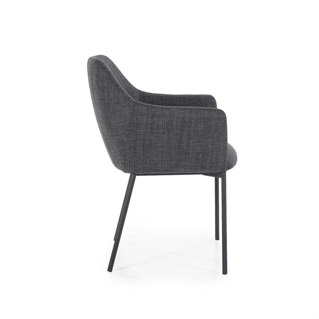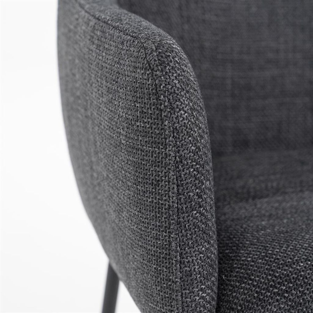Den eleganta Eleonora Chair Paul i antracit är en stilren och funktionell fåtölj som passar perfekt både vid matbordet och i loungen. Stolen har en mjukt vadderad sits och ryggstöd som är klädd i ett slitstarkt, mörkgrått textil med subtil textur för en modern känsla. De smala, svarta metallbenen kompletterar designen och ger ett stabilt intryck. Denna fåtölj erbjuder inte bara komfort utan blir också ett stilfullt inslag i ditt hem.