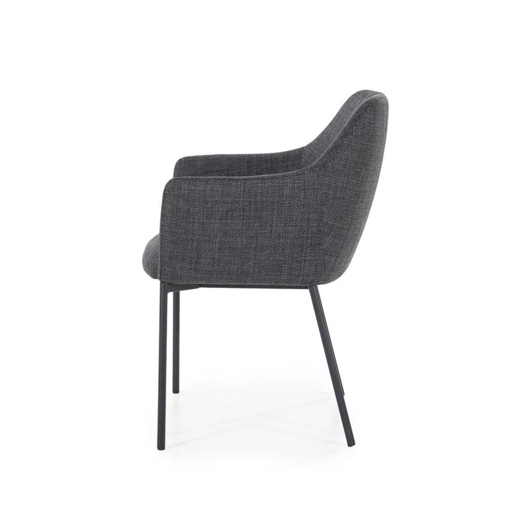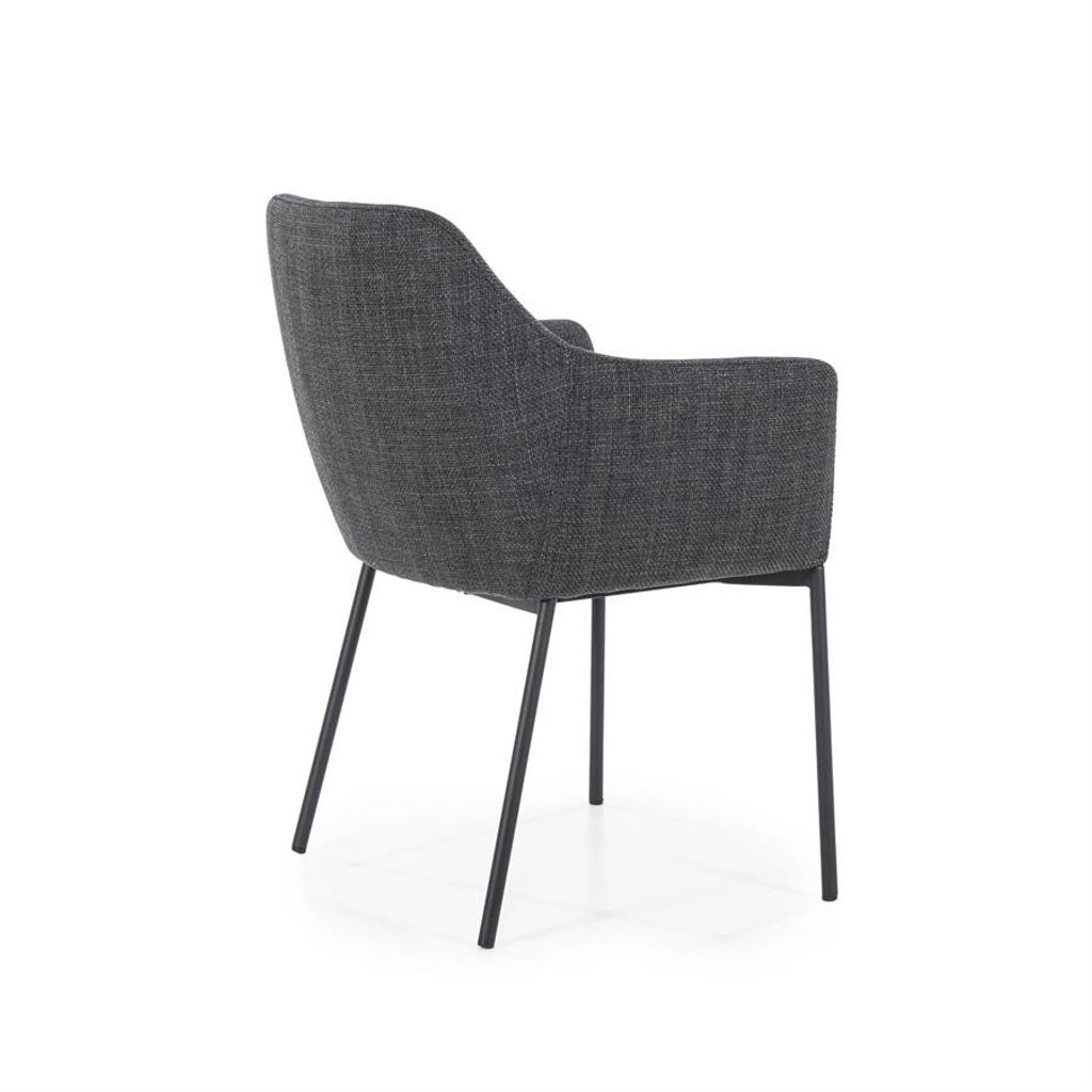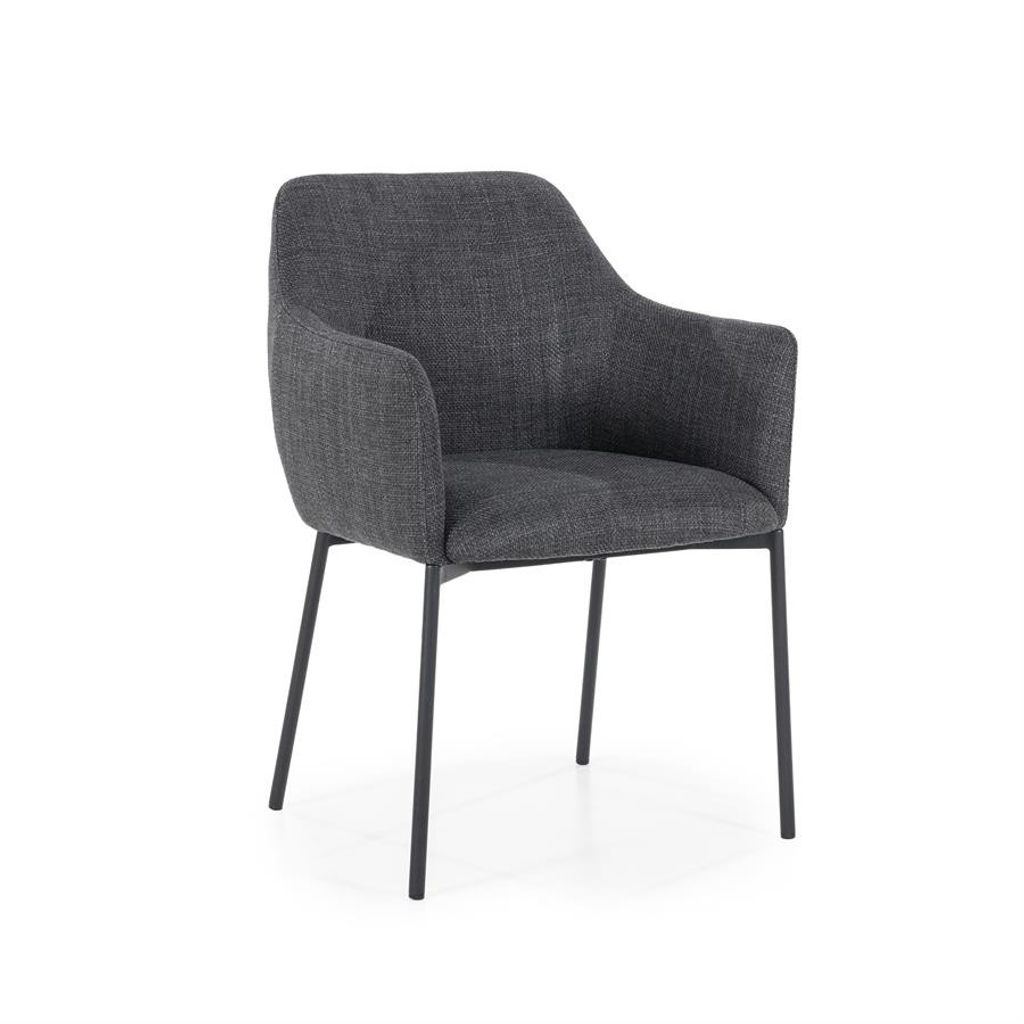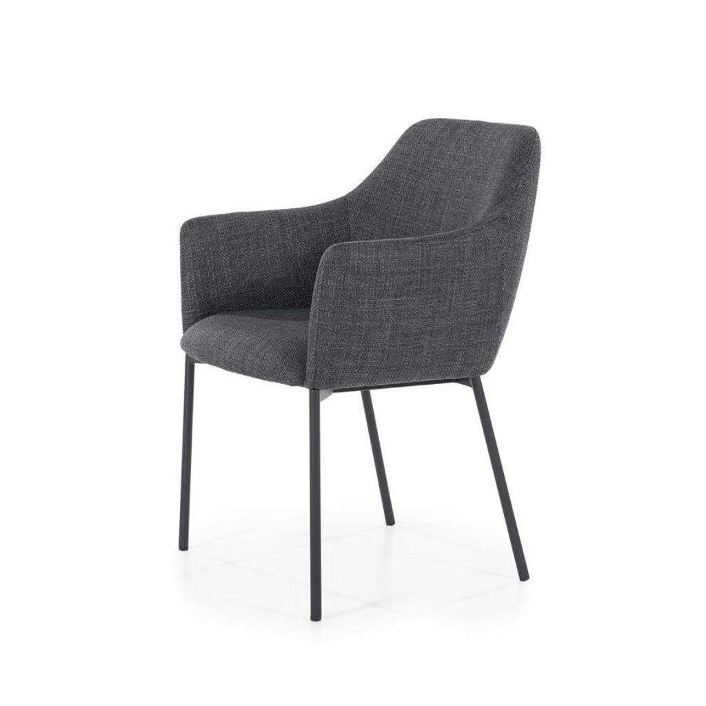 Den eleganta Eleonora Chair Paul i antracit är en stilren och funktionell fåtölj som passar perfekt både vid matbordet och i loungen. Stolen har en mjukt vadderad sits och ryggstöd som är klädd i ett slitstarkt, mörkgrått textil med subtil textur för en modern känsla. De smala, svarta metallbenen kompletterar designen och ger ett stabilt intryck. Denna fåtölj erbjuder inte bara komfort utan blir också ett stilfullt inslag i ditt hem.