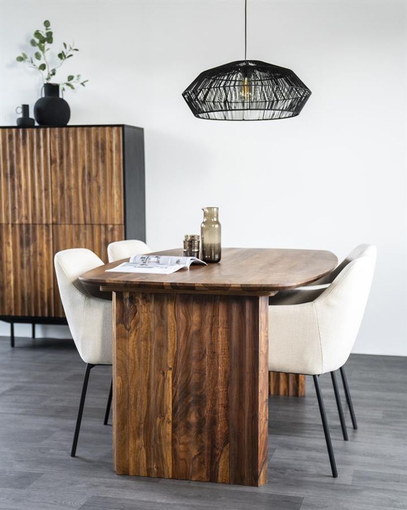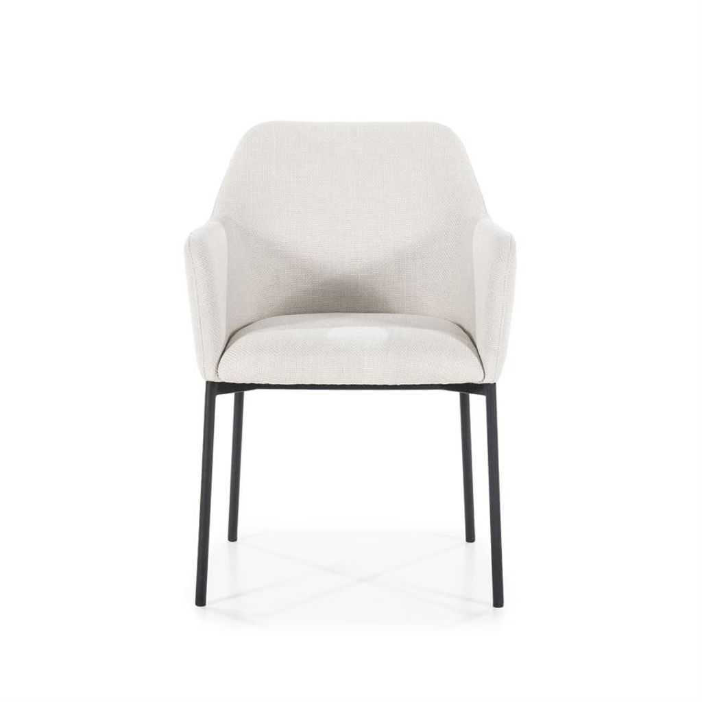 Eleonora Chair Paul i beige Linea är en elegant stol som kombinerar stilren design med komfort. Den har en mjuk, beige klädsel med en subtil textur som ger ett inbjudande utseende. Stolen vilar på robusta svarta metallben som skapar en modern kontrast och säkerställer stabilitet. Perfekt för både matplatsen och vardagsrummet, ger den ett sofistikerat lyft till ditt hem.