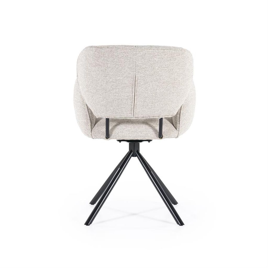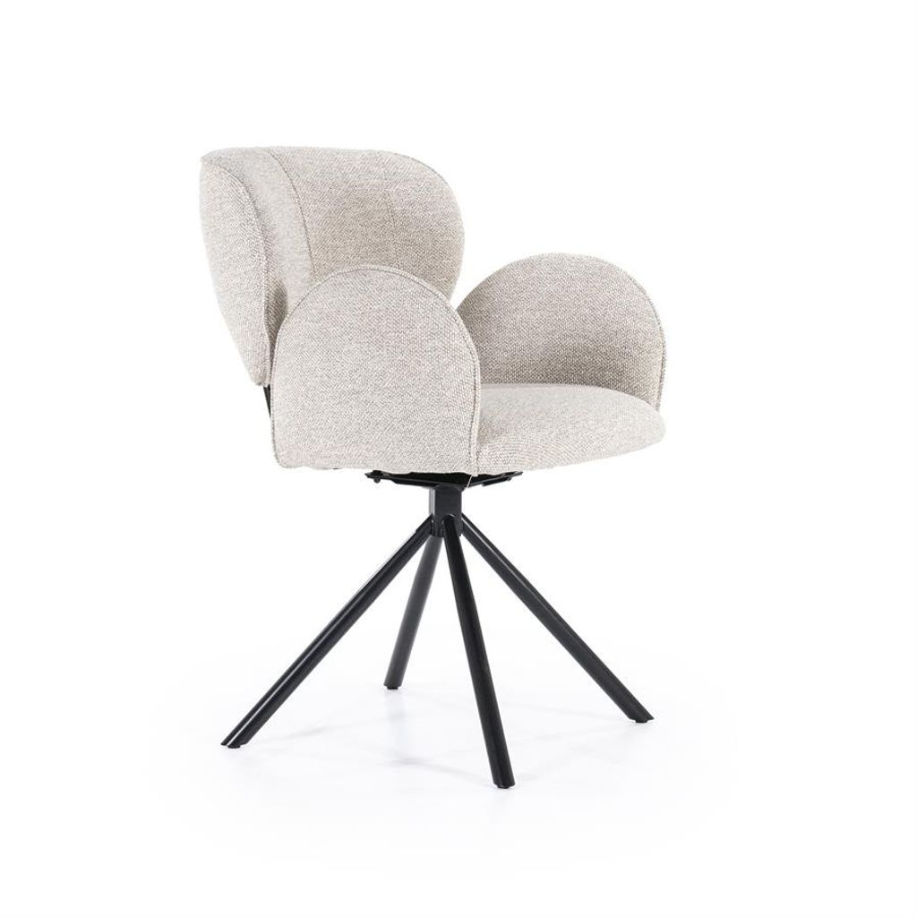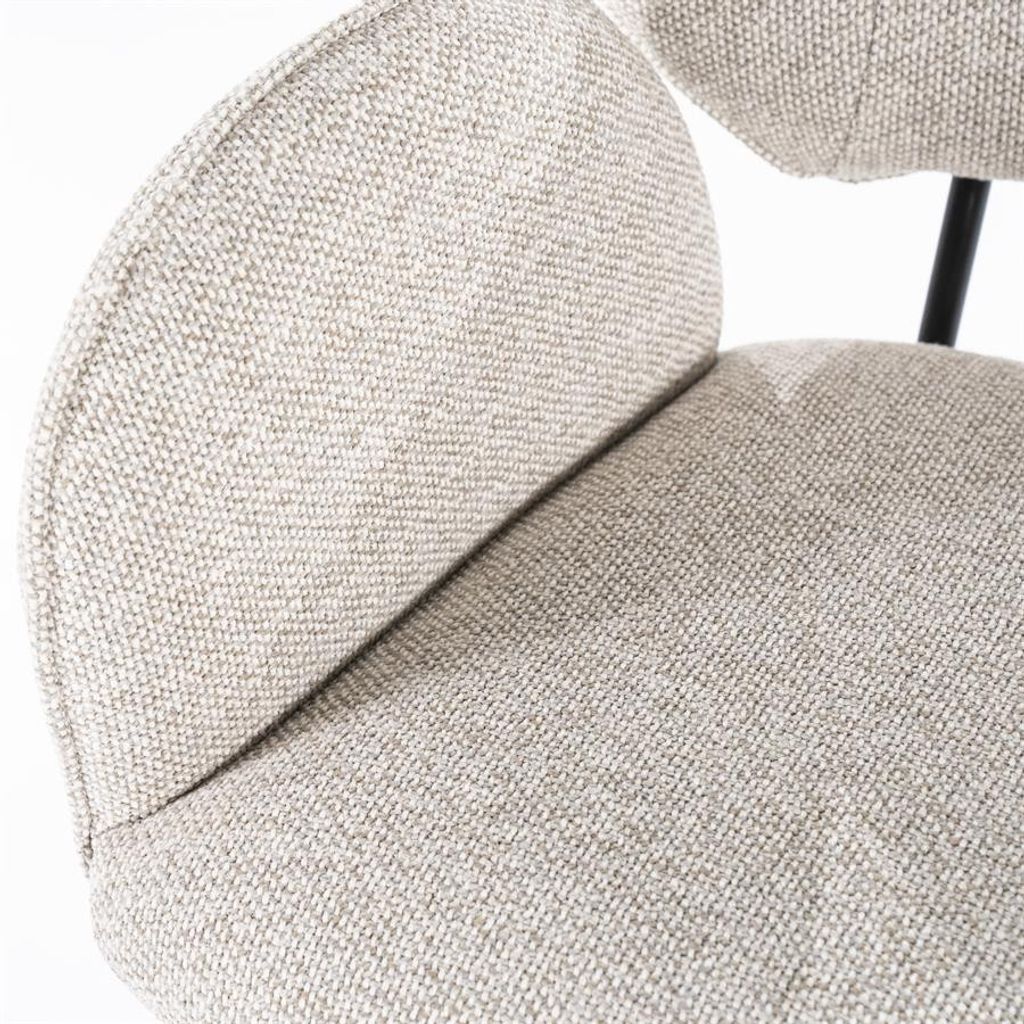 Elegant och bekväm stol med taupefärgat tyg och svartmetallben. Perfekt för modern inredning.