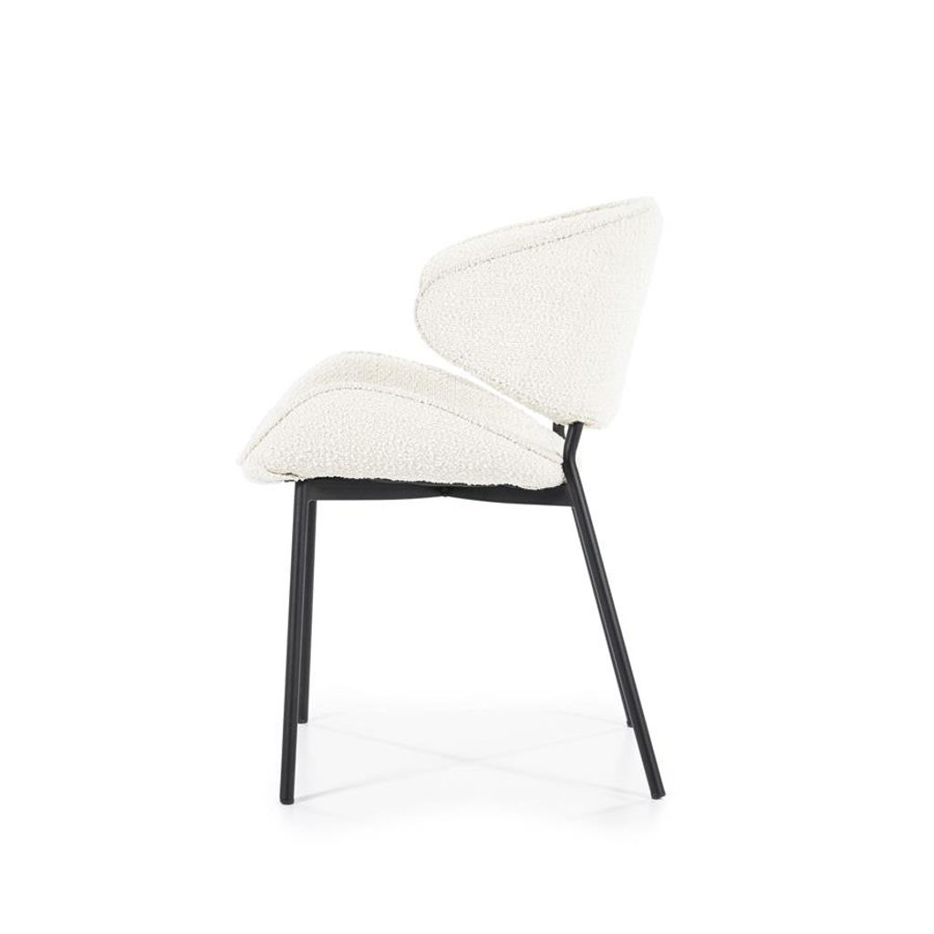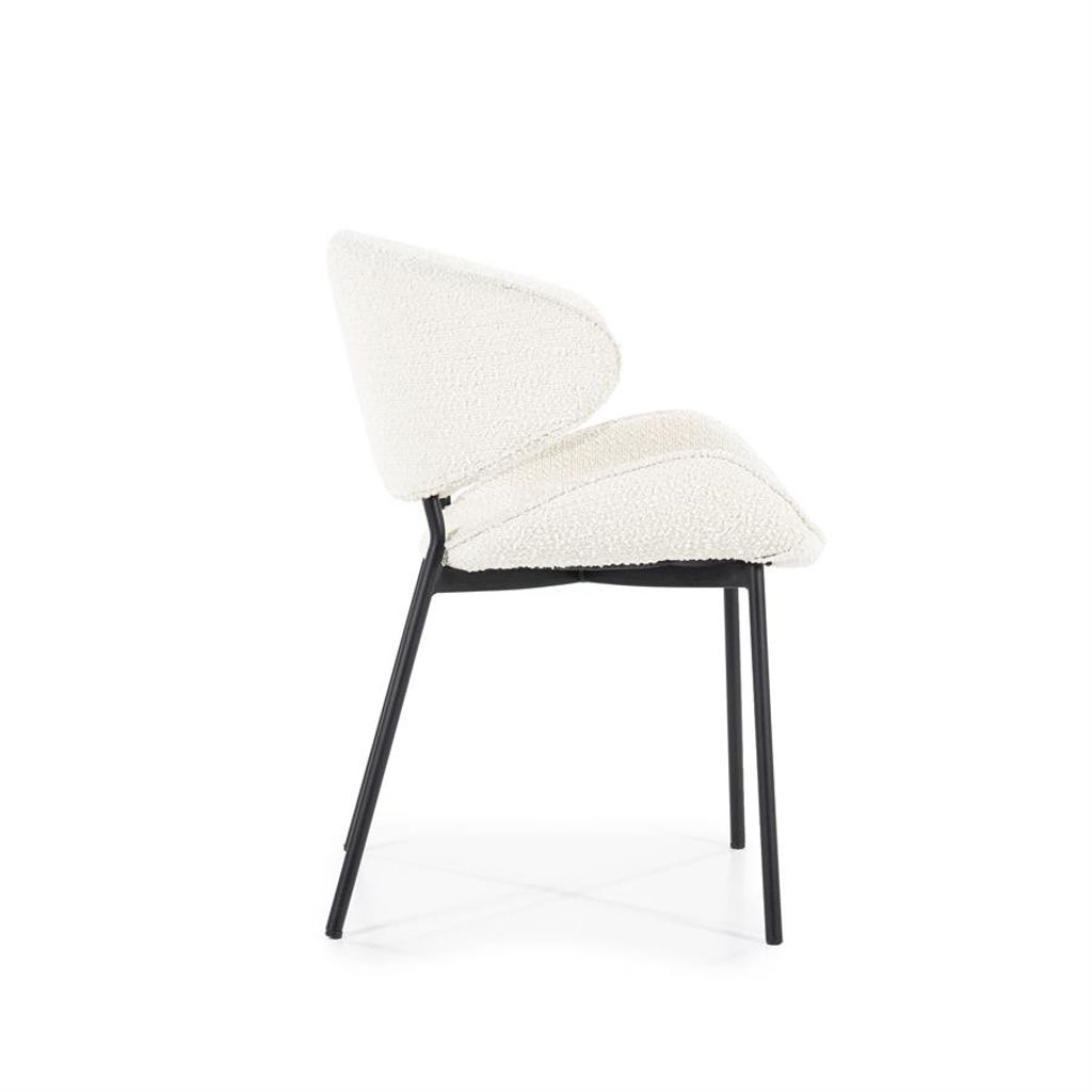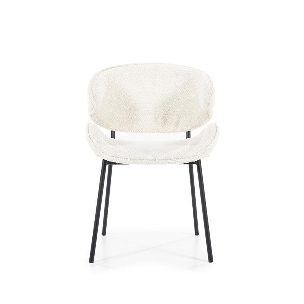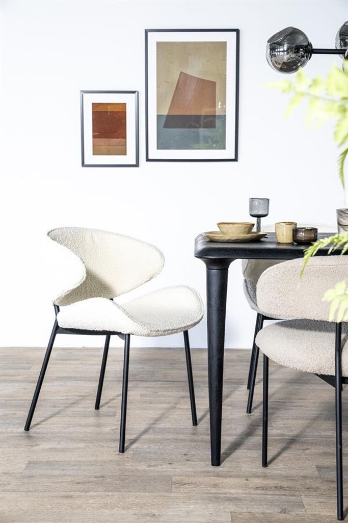 Upptäck Eleonora Chair Tess i beige, med en mjuk bouclé-textur och eleganta svarta ben. Perfekt för moderna hem.