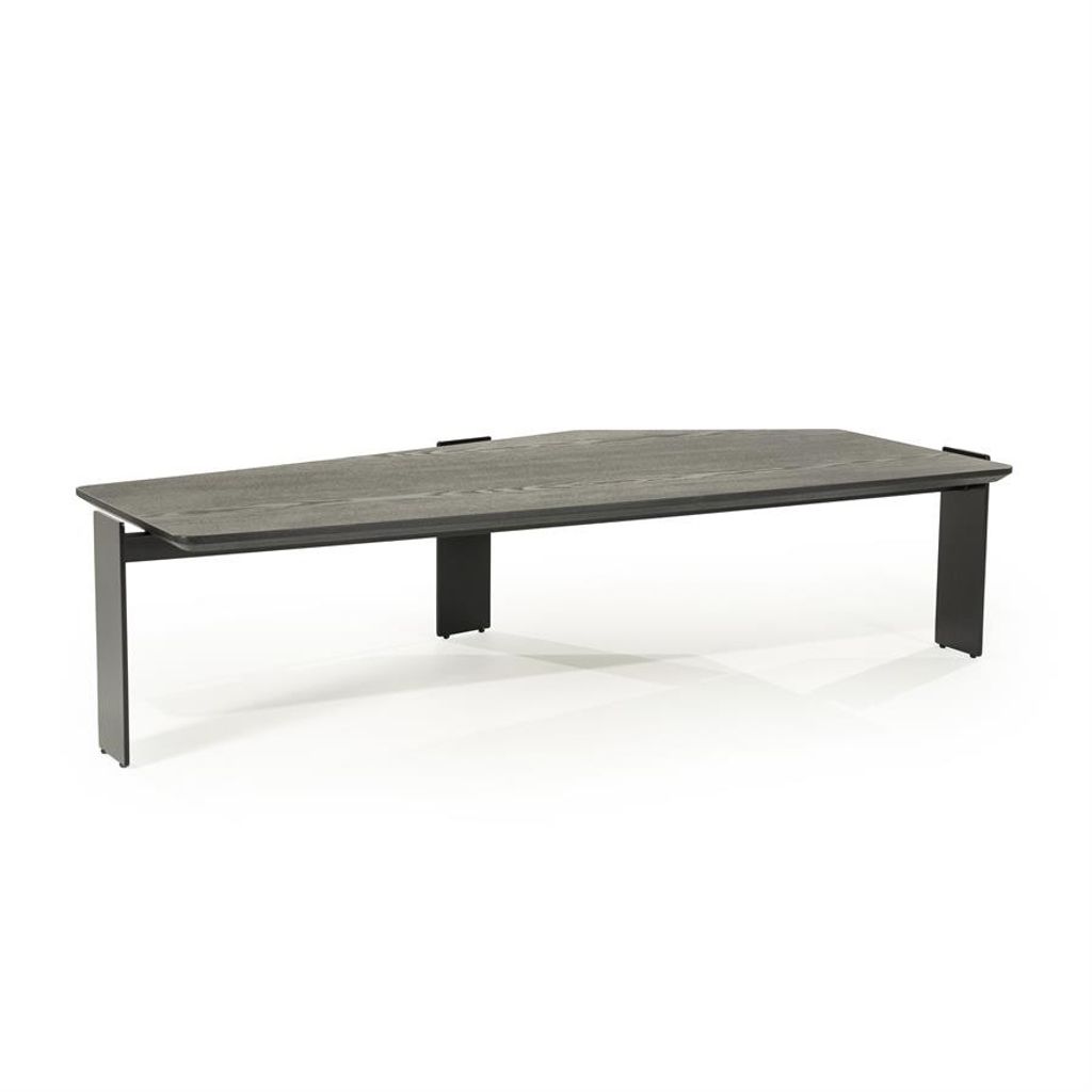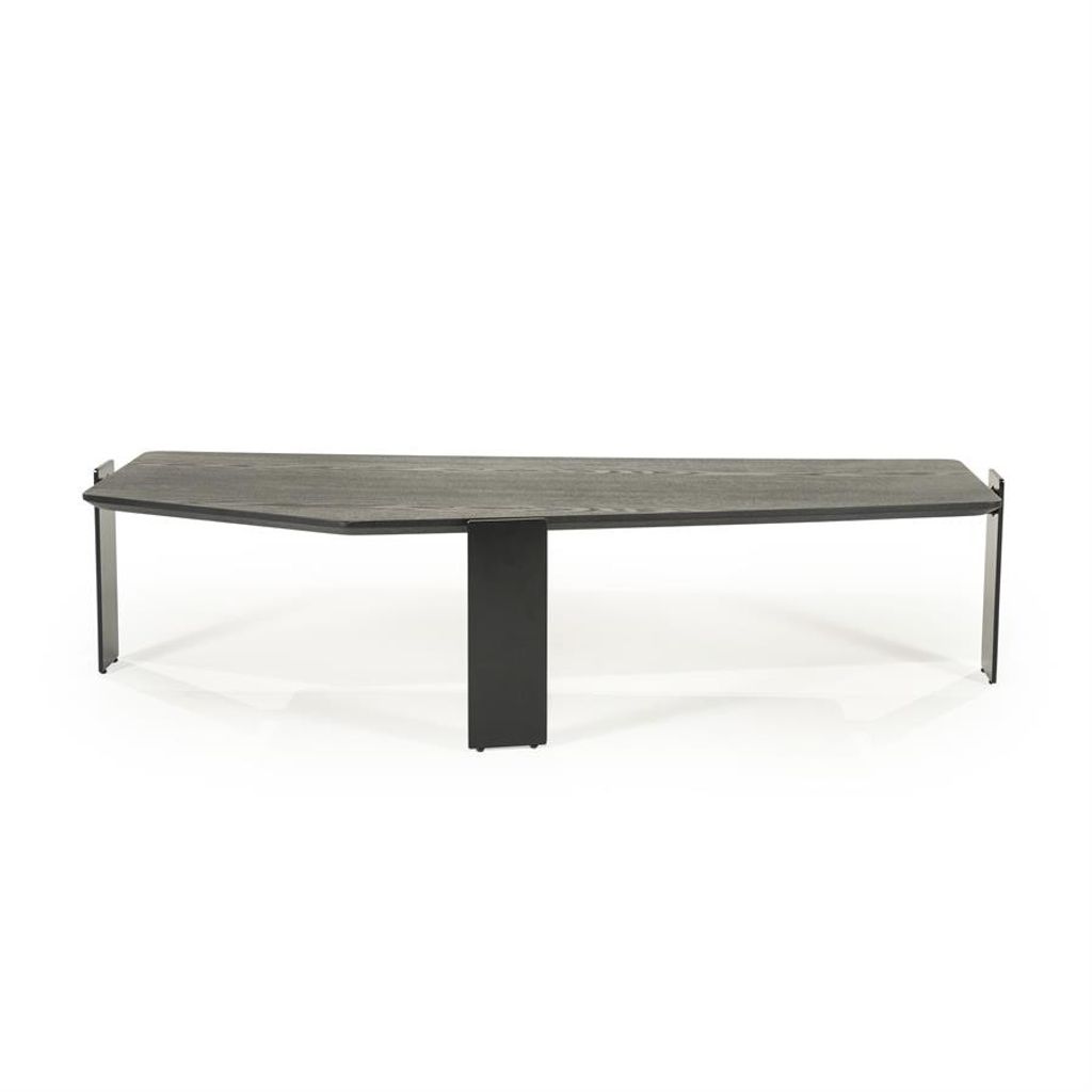 Elegant soffbord i svart med unik form och robust design. Perfekt för modernt vardagsrum.