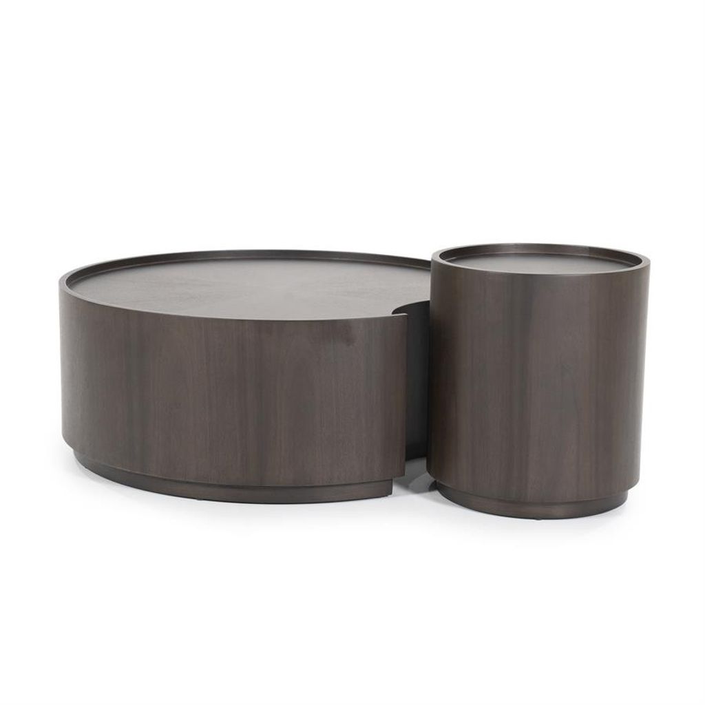 Stilrent soffbordsset i brun finish med elegant design, perfekt för moderna hem.