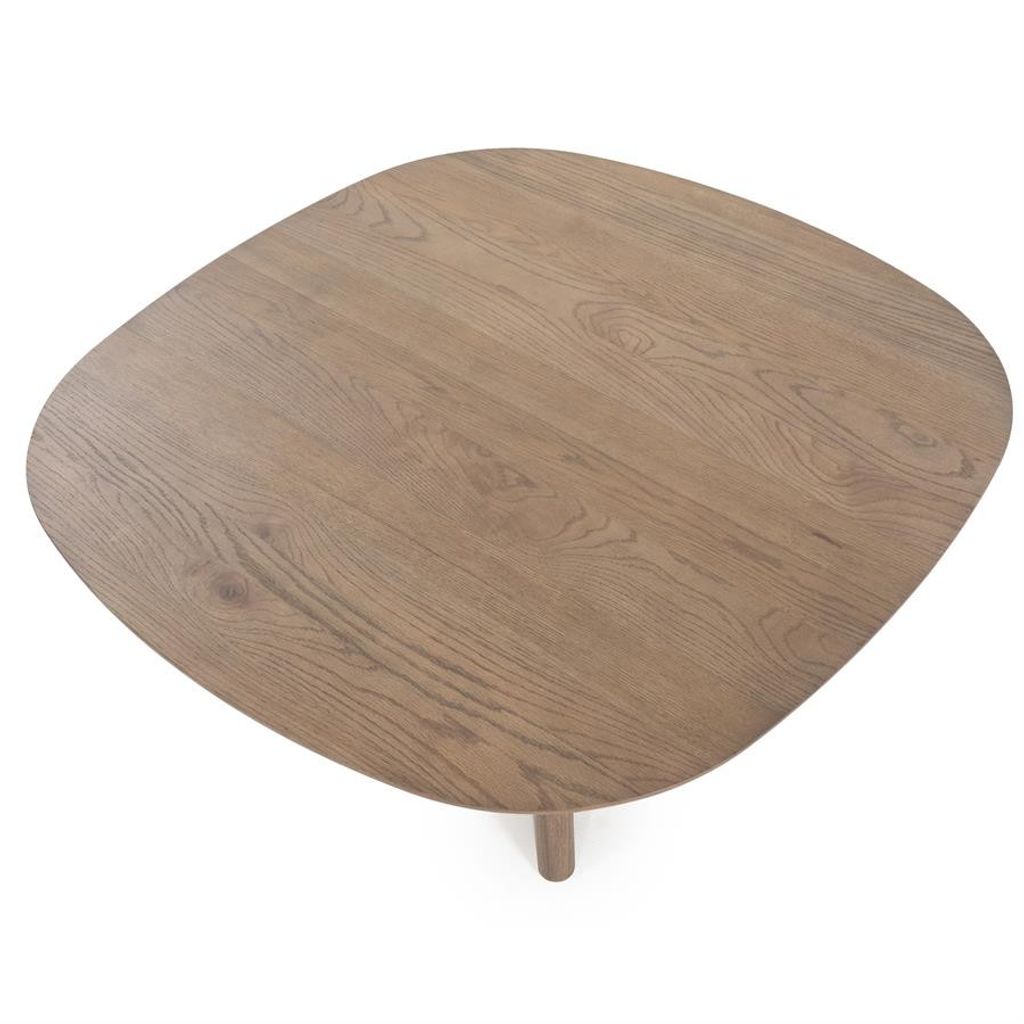 Elegant soffbord i brun ek med rundade hörn och stabil konstruktion för en modern och stilren inredning.